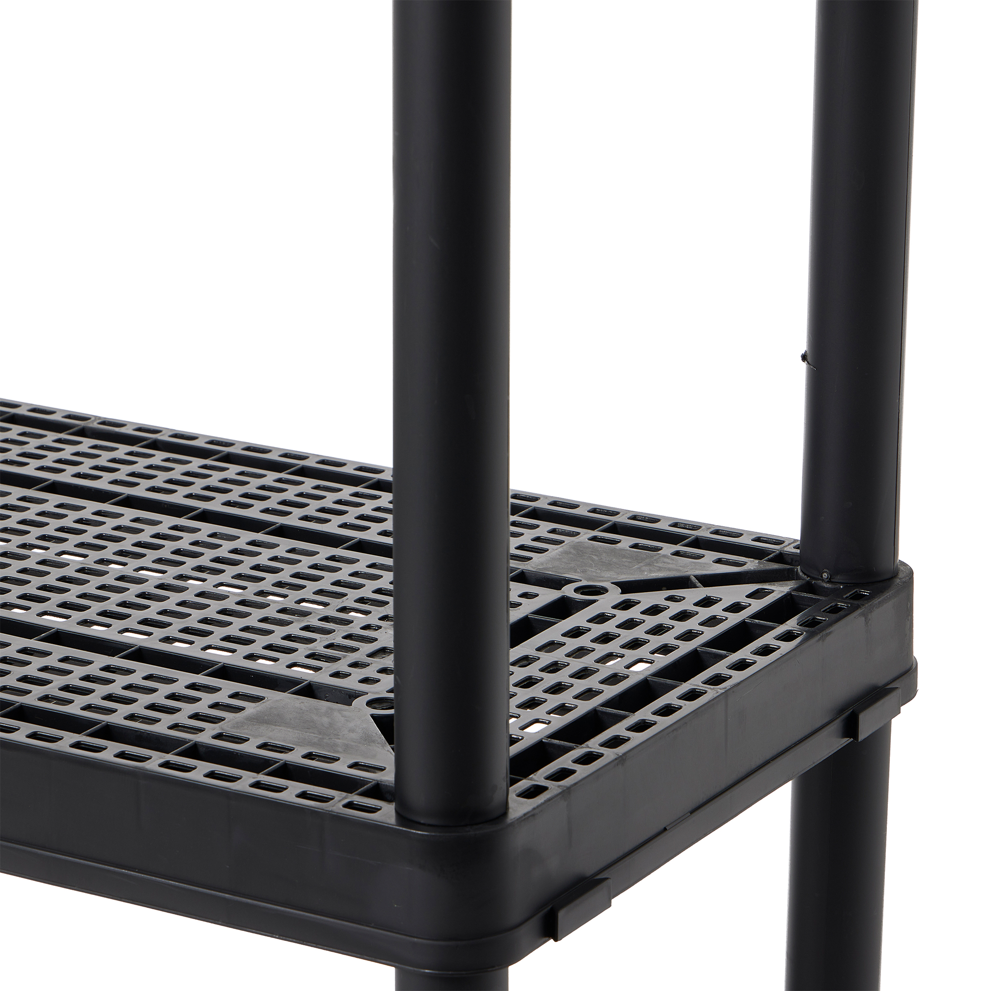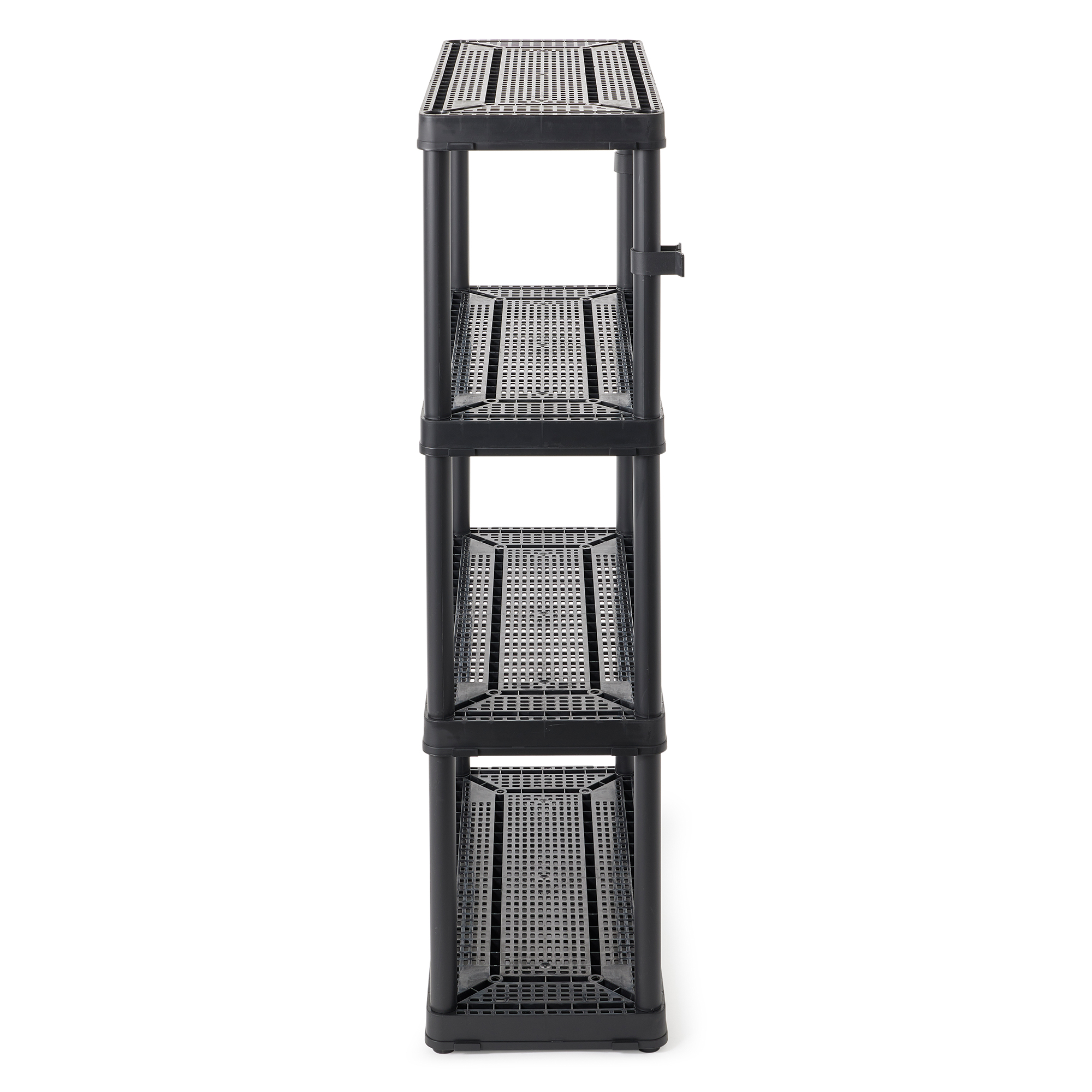 When you're short on closet space or need to organize the pantry, count on this 4-Tier Fixed Height Storage Shelving from Gracious Living to help you transform clutter into clean. These plastic storage shelves function as garage storage, a shelf organizer to display shoes, or even as a bookcase, allowing you to easily organize and store various items.