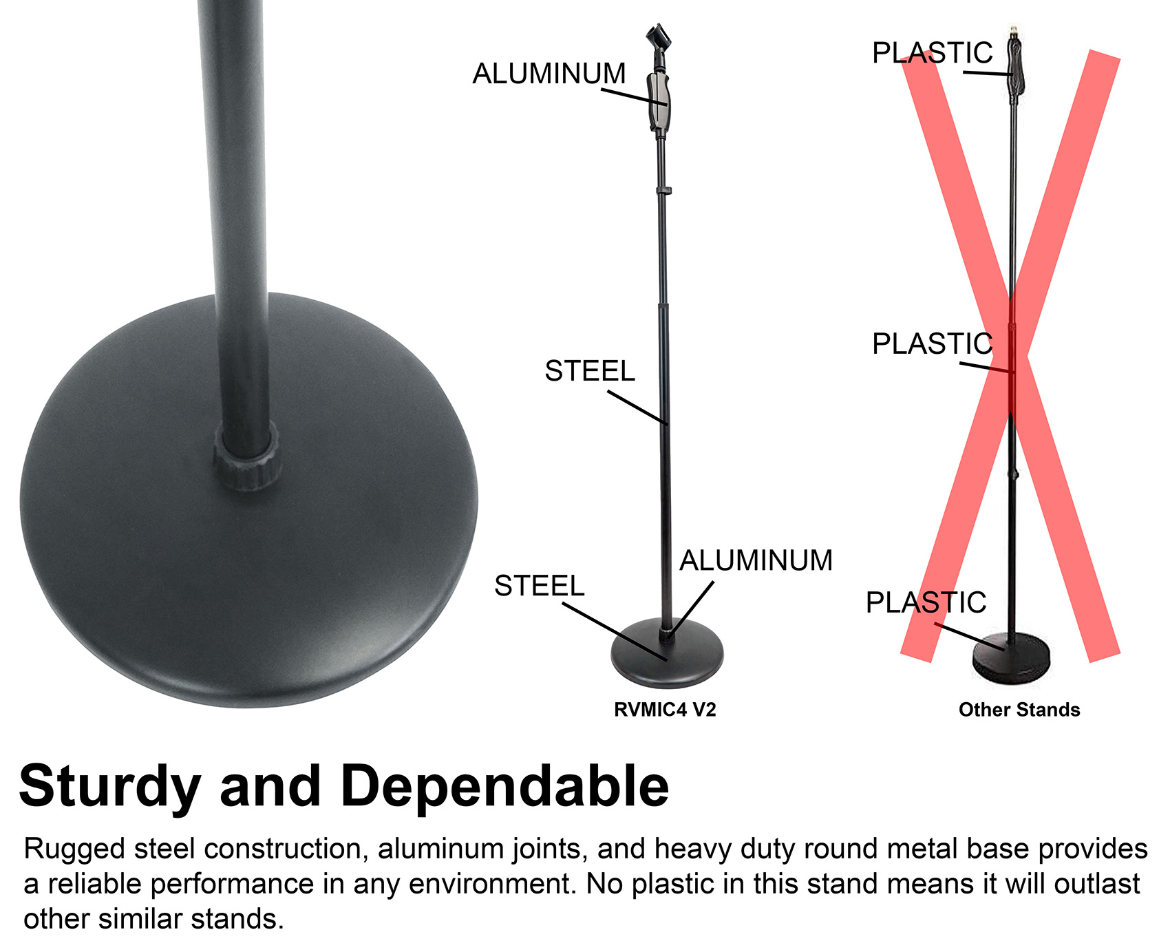 This Rockville RVMIC4 v2 mic stand has an all-metal clutch system that allows you to instantly raise or lower the stand with one hand. It is the most convenient way to adjust a mic stand!