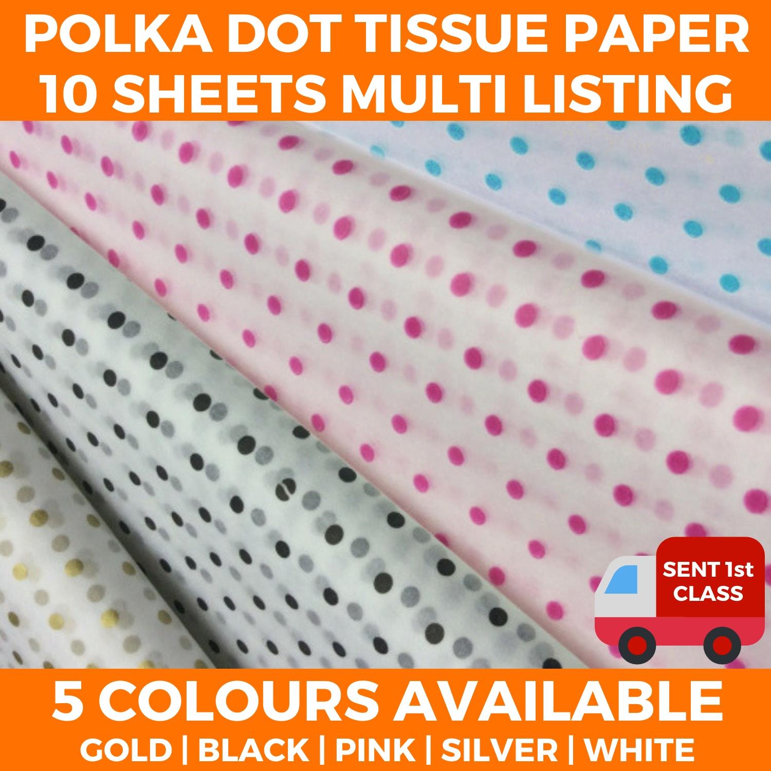10 SHEETS - POLKA DOT PRINTED TISSUE PAPER ACID FREE QUALITY SHEETS SPOTS GIFT