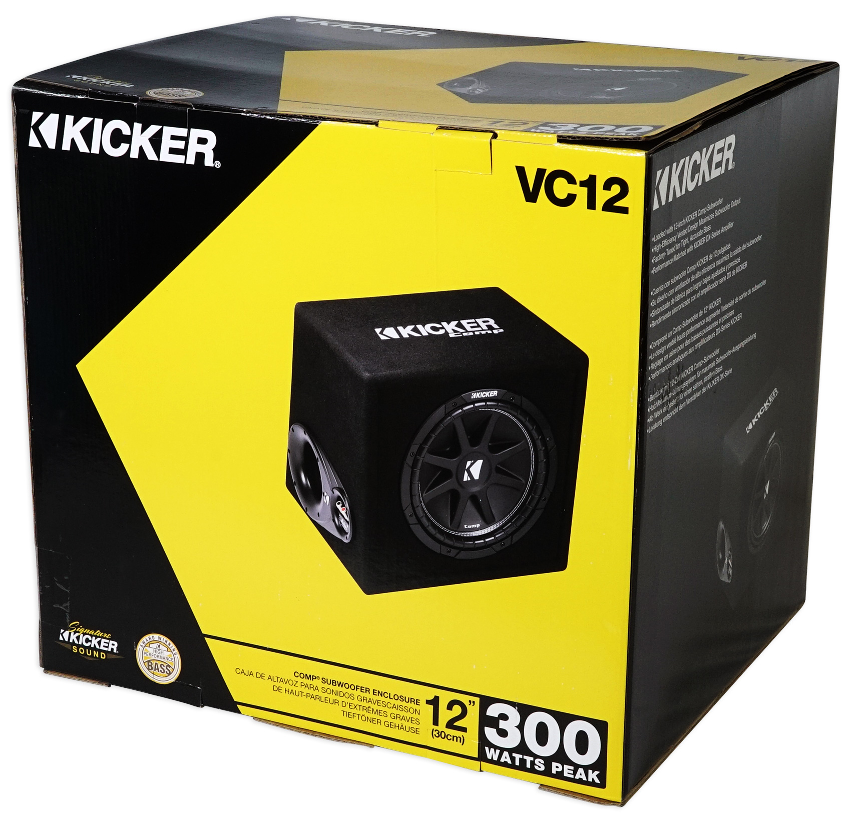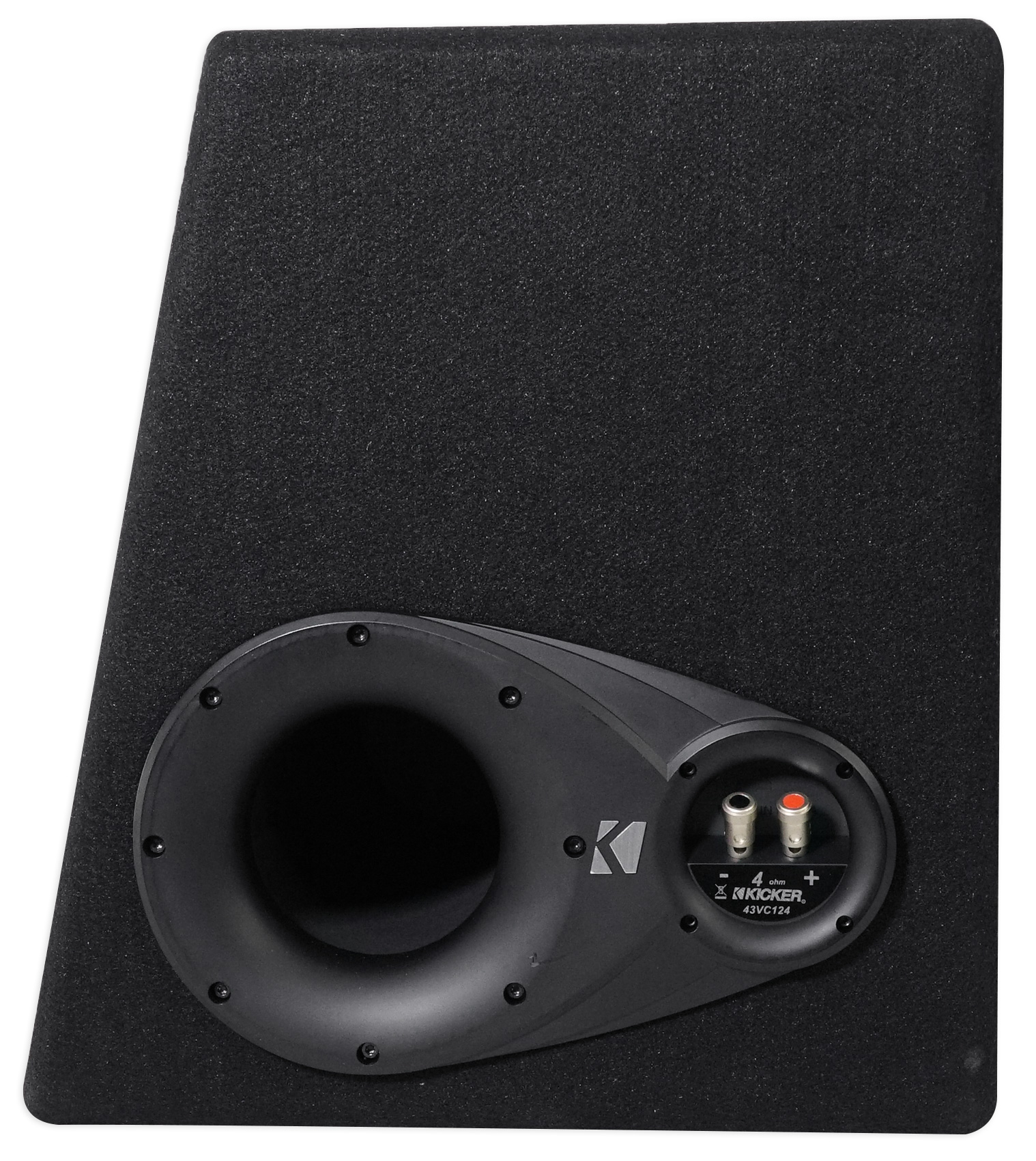The 2016 Comp 12-Inch Subwoofer Enclosure comes loaded with a single 4-Ohm terminal. With a custom-made port plus updated subwoofer and box design, this ultra-efficient enclosure doles out a new level of bass in a very small space. The Comp 12-Inch Loaded Enclosure works best with 150 watts of recommended power. KICKERĀ® 2016 Comp Loaded Enclosures deliver a new look and flexible designs to work with any car or truck.