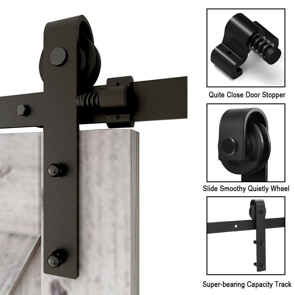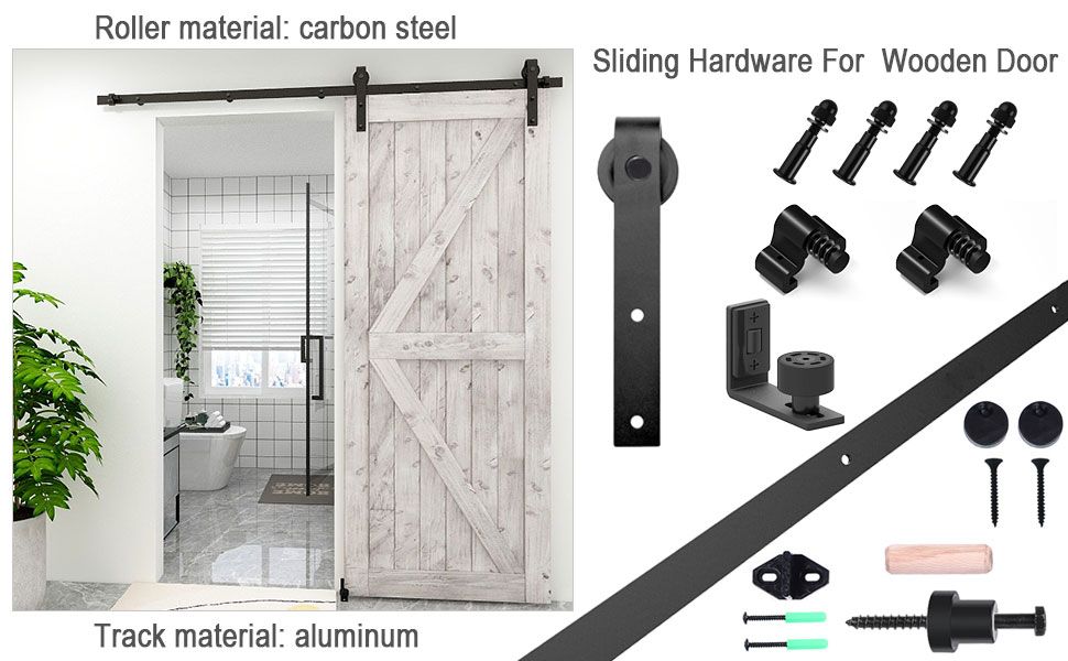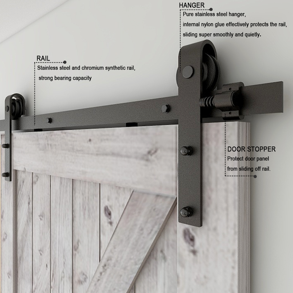 【DURABLE & SAFE】High quality barn door hardware kit, Premium nylon roller wheel, Gcr15 roller bearing, High strength industrial grade track, Can easily hold 330bls loads