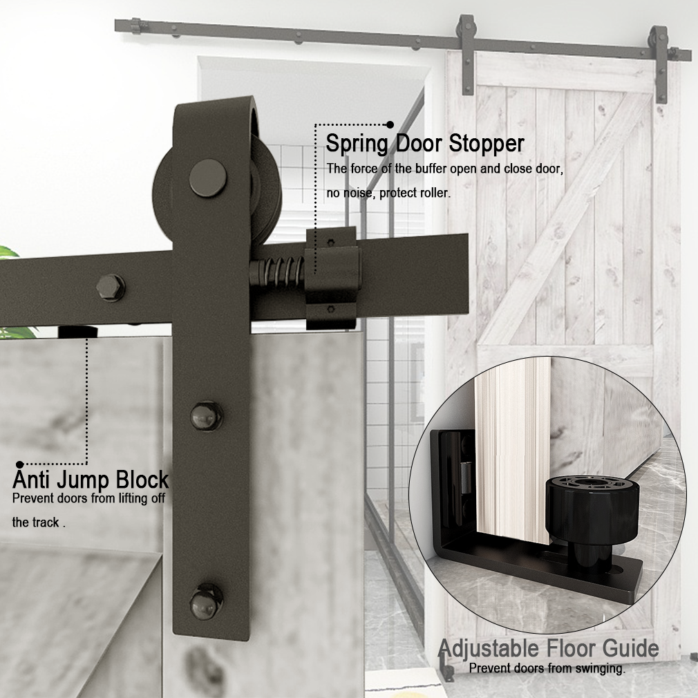 Unique Spring Door Stops:The spring design door stopper can not only reduce sound during sliding your door, also extend the life of the kit.