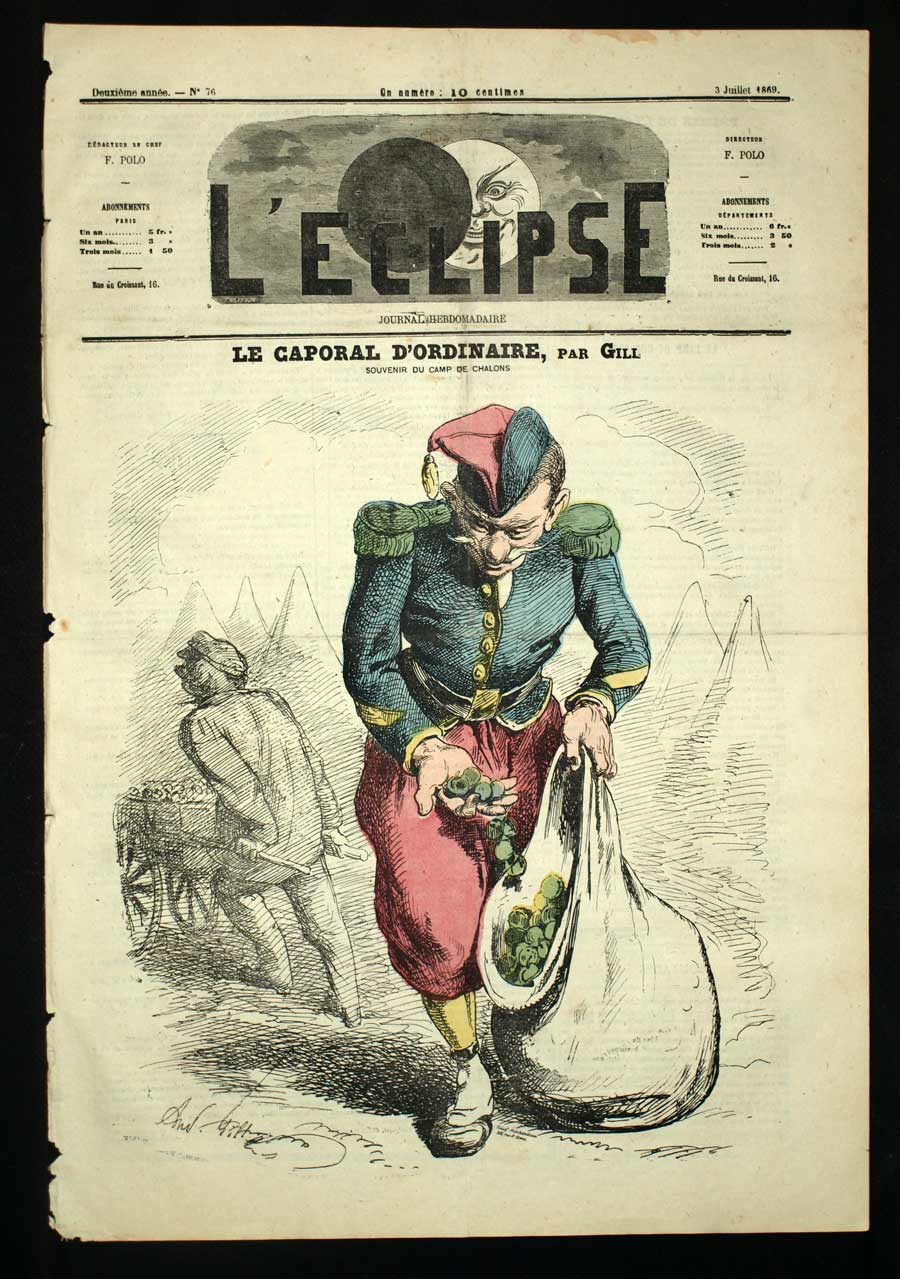 Eclipse Eclipse July 3, 1869 Satirical newspaper illustrated by Gill 2 front back sheets The background is slightly damaged but no attack to text or illustrations. 48 x 34 centimeters Original document