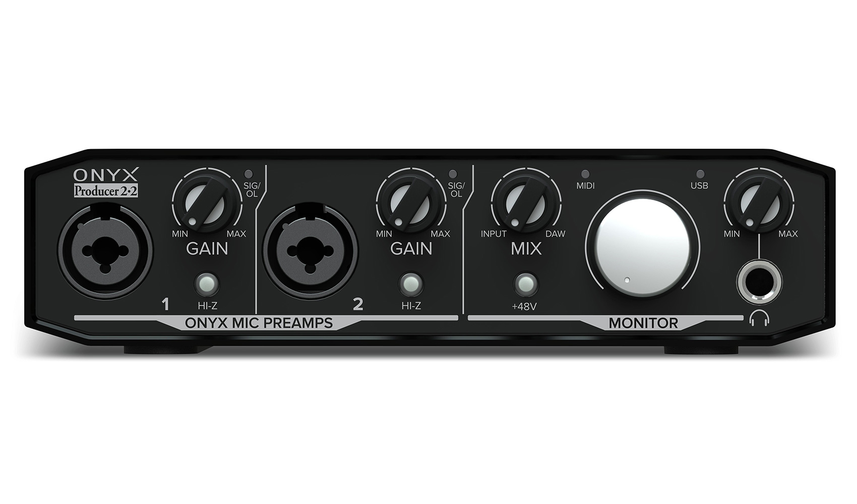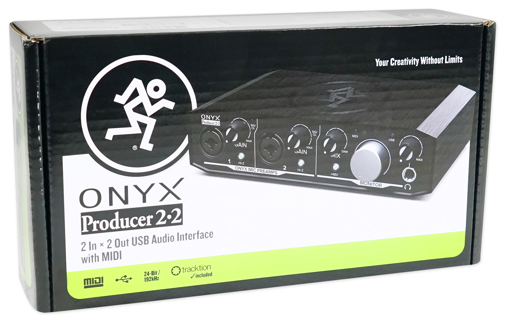 Combining high-resolution 24-bit/192kHz converters with premium Mackie analog circuit and Built-Like-A-Tank™ hardware design, the bus-powered Onyx™ Producer 2•2 is perfect for home studios, mobile recording, and dual mic applications. Featuring two XLR/TRS combo inputs with Onyx mic pres, each is equipped with phantom power and Hi-Z instrument switches for maximum versatility. Plus, with zero-latency direct analog monitoring ensures you can always hear yourself in real time. It also has built-in MIDI I/O for controllers, synths, and more. With the Onyx Producer 2•2, you have the power to capture your performance and experience media with pristine fidelity at home or on the go. Your Creativity Without Limits – Onyx Series USB Audio Interfaces.