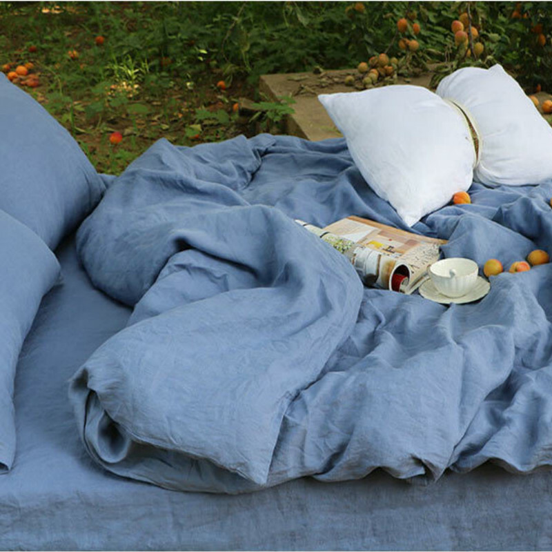 Made of imported flax fiber from France, where the finest long staple linen fiber in the world is produced. Linen is a durable fiber, as is 30% stronger than cotton and 20% stronger than silk. Our linen duvet cover set has fine durability.