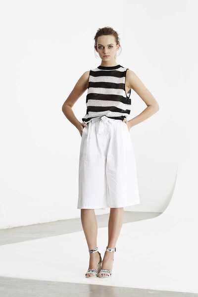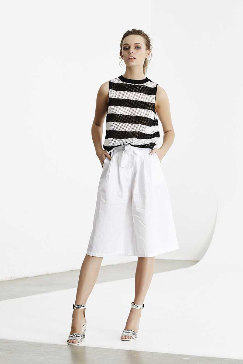 Classic and versatile, this lightweight blouse by May the Label features a striped print in hues of black and cream. This essential tank looks great styled with anything from jeans to a solid color skirt! Unlined, semi-sheer. Designed in Australia.