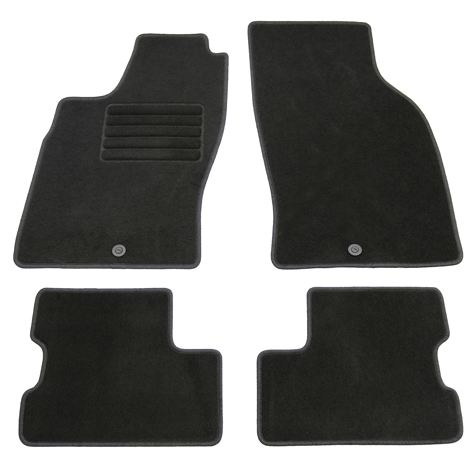 Die Grundfarbe der Fußmatten ist schwarz. Dies passt sich bestens und neutral an die meisten Fahrzeuge an, deren Bodenteppich bereits dunkel gehalten ist. Unauffällig und dezent, aber dennoch hochwertig eingefasst sind die Fußmatten mit schwarzem Glanzgarn gekettelt.