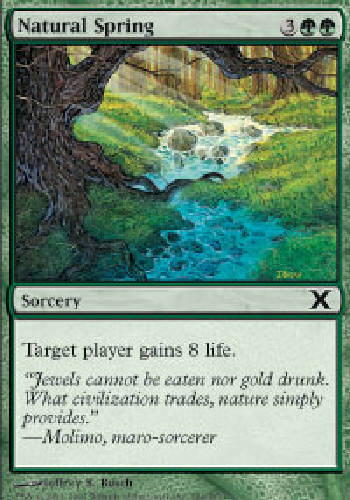 NATURAL SPRING: Sorcery, Target player gains 8 life. RarityCommon ColorGreen TypeSorcery Mana3GG Cost5 Set10thEdition SetCoreSet