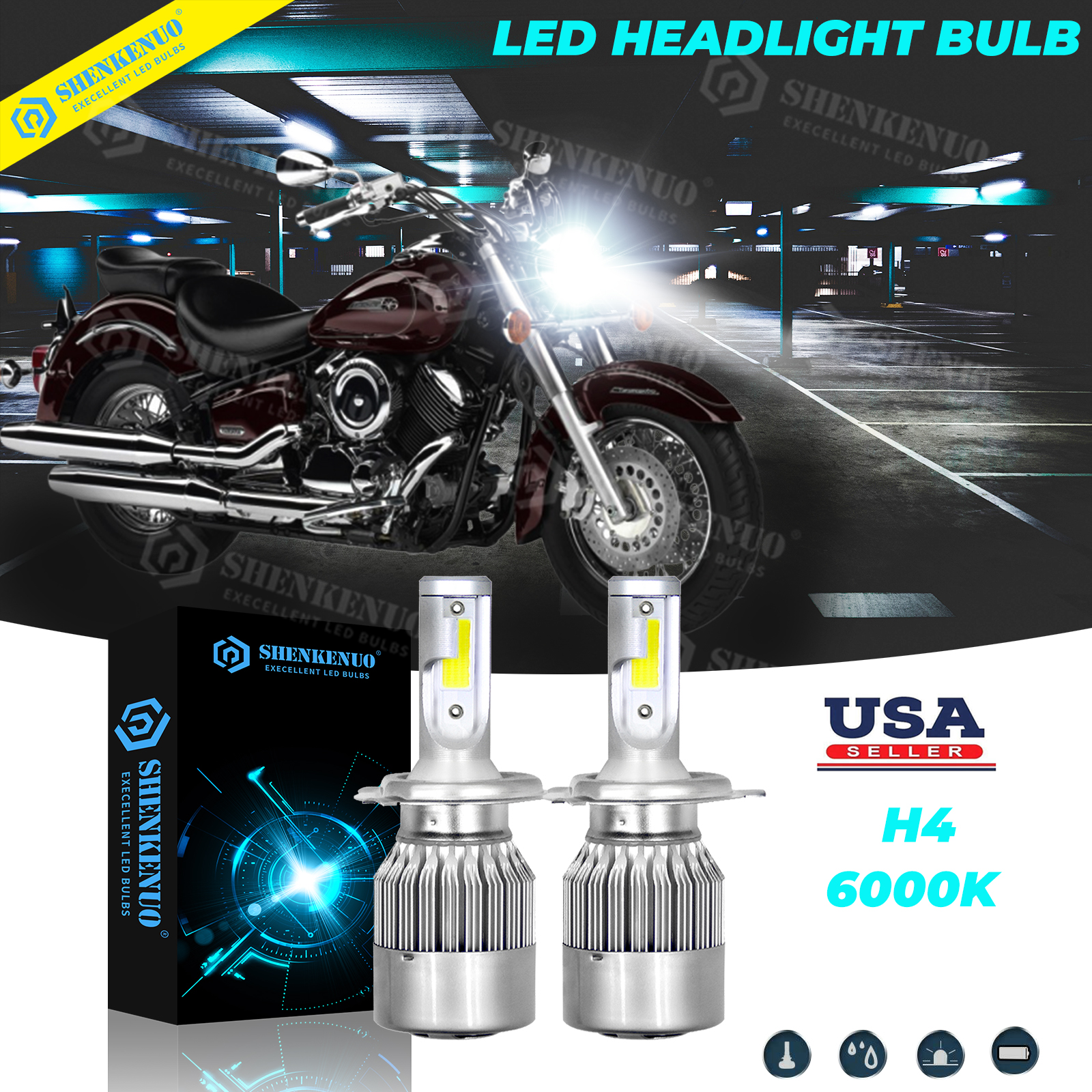 For Yamaha XVS1100A Classic 2000-2004 V Star 1100 -6000K H4 LED Headlight Bulbs