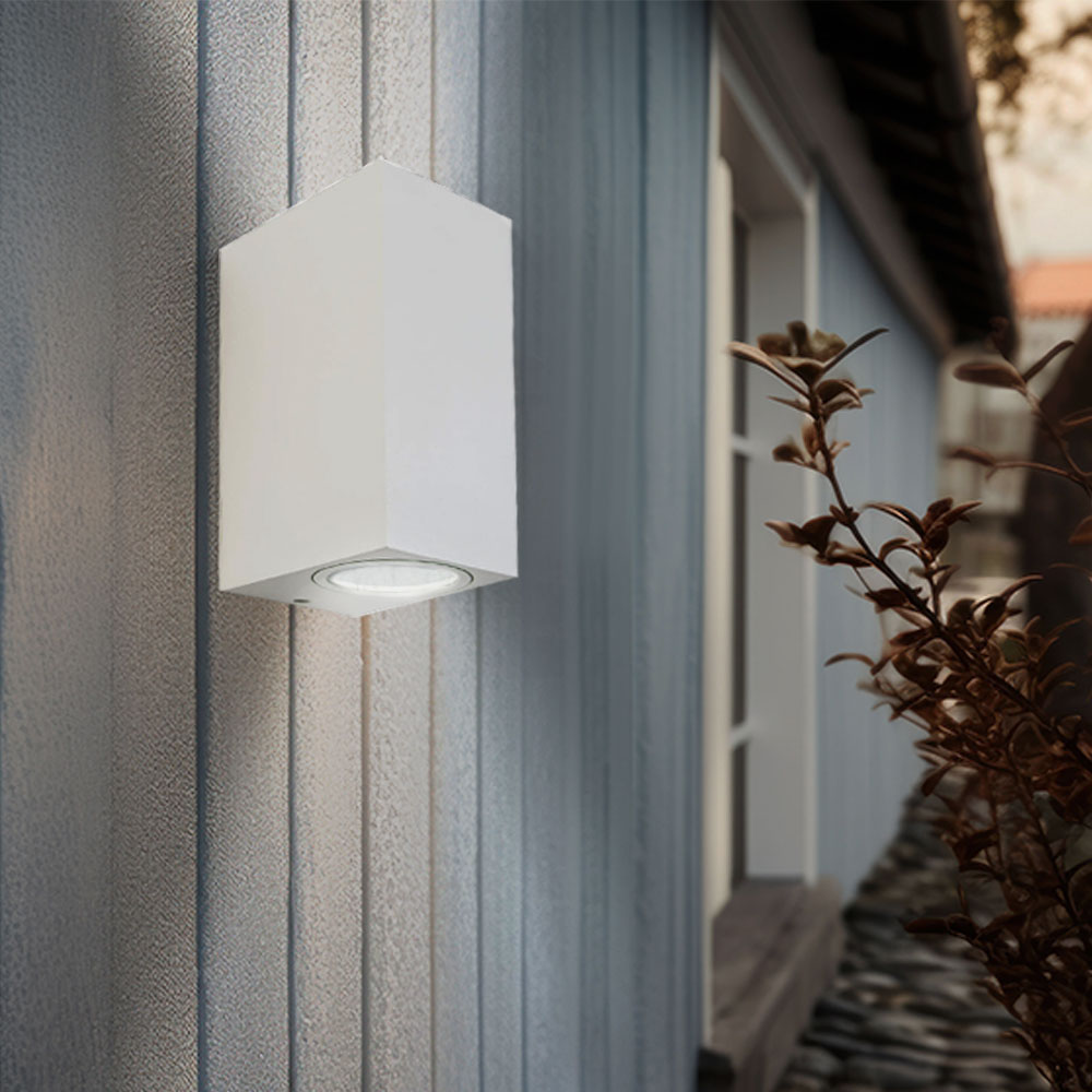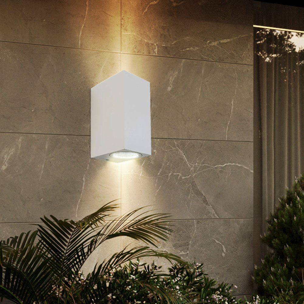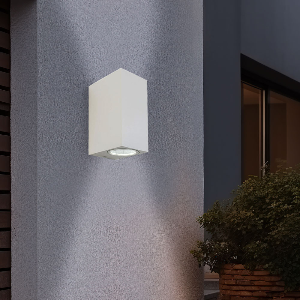 • Farbe: weiß • Schutzart: IP44 • UP & Down Beleuchtung • Höhe x Breite x Tiefe in cm: 15 x 6,8 x 9,2 • Fassungen: 2x GU10 • Leuchtmittel enthalten: Nein • Leistung Leuchtmittel: max. 2x 35 Watt • Stromversorgung: 220-240V, 50-60Hz