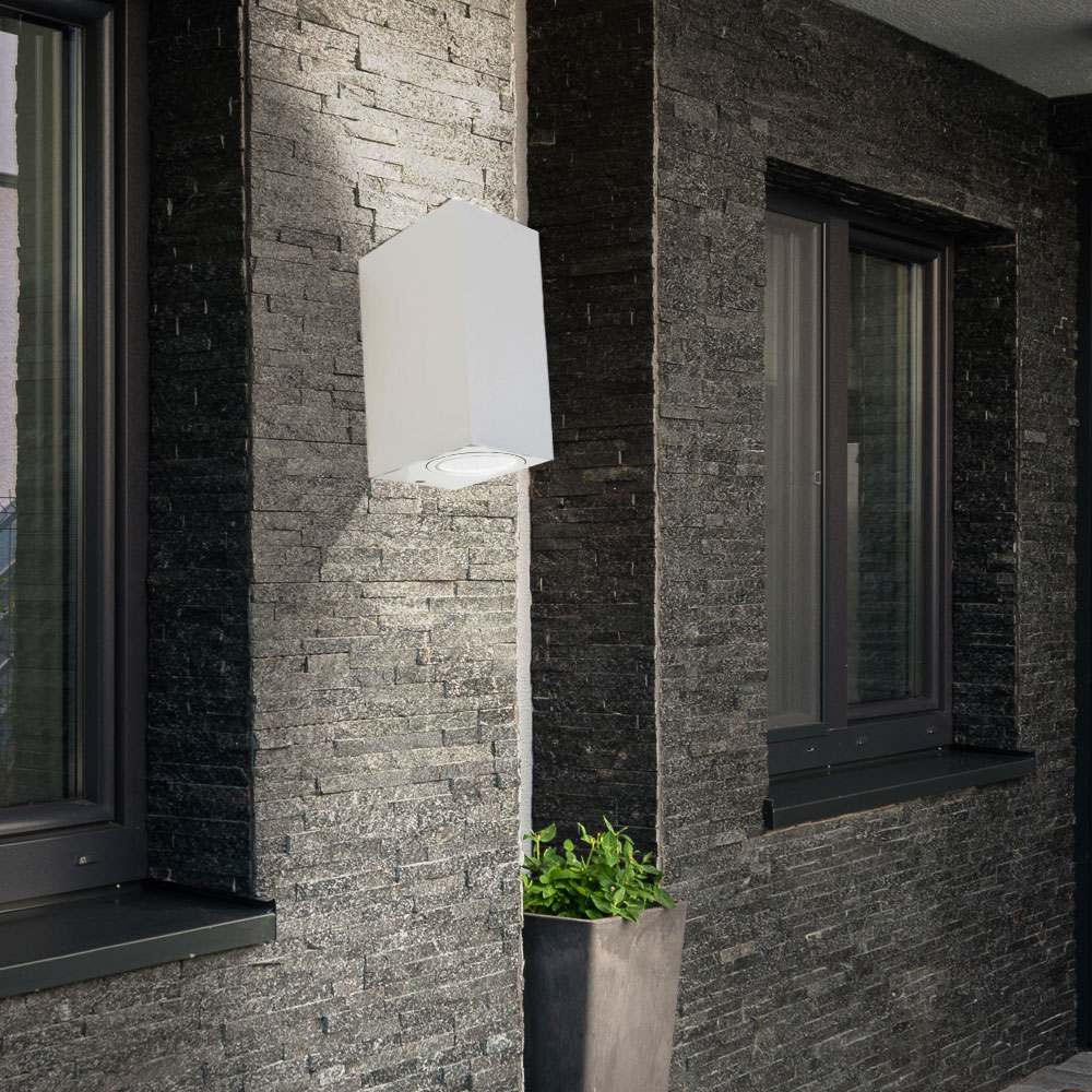 Außen Bereich Wand Leuchte ALU UP DOWN Garten Lampe Grundstück Strahler weiß