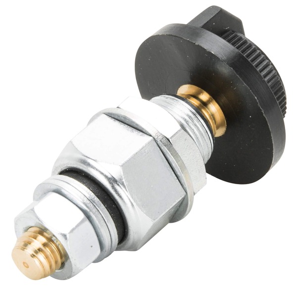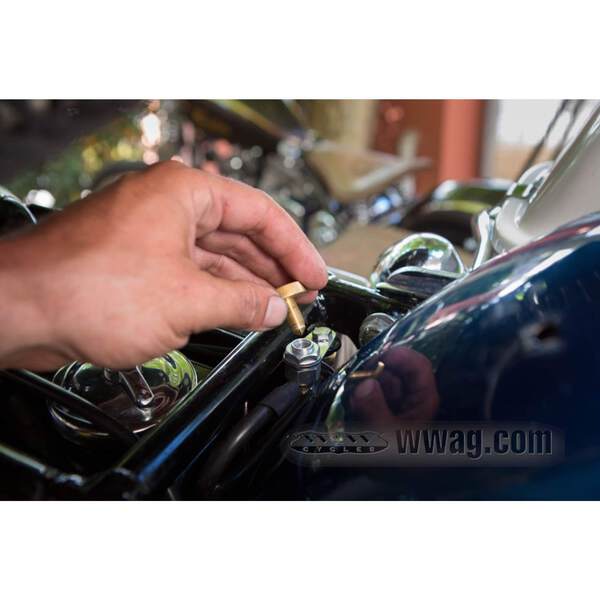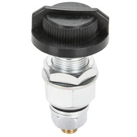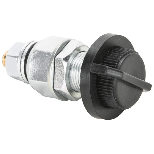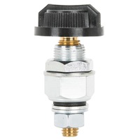 Terminal and thumb screw assembly which can be mounted on any suitable place on the motorcycle. It connects the battery’s ground (negative) terminal and cable with the frame. Zinc plated steel with a Bakelite thumb screw, rated for 75 A. Made in Germany. After installation you have two options: -Use your Kill Bill Switch like an ignition switch. Half a turn out and the current is interrupted.