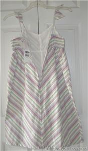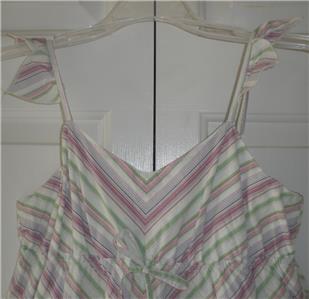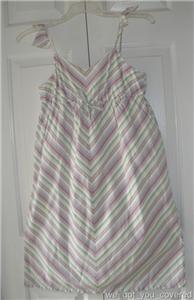 Your little princess will look stunning in this gorgeous Old Navy dress. The flutter sleeves, cinched empire waist and soft colored stripes add a fun style to this dress that your little fashionista will love. Great for Easter/Spring pictures, church or any other social gathering. To ensure the perfect fit please refer to the measurements of the dress provided below. All questions are welcomed, please ask before buying. Comes from a smoke and pet free home.