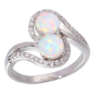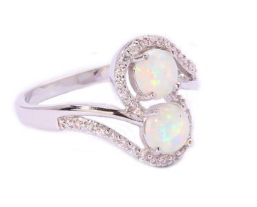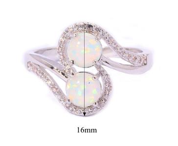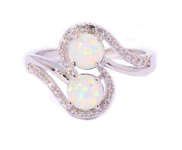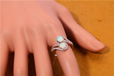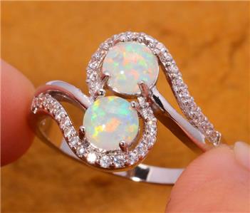 GORGEOUS WHITE FIRE CREATED OPAL/WHITE TOPAZ RING