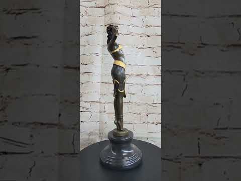 Indulge in the grace and elegance of this Dimitri Chiparus Art Nouveau bronze statue, a captivating masterpiece that celebrates the splendor of the "lost wax" bronze casting method. Every delicate feature is meticulously captured, showcasing the brilliance of the early 20th-century artistic movement. We comprehend the reservations that may arise when investing in a valuable bronze artwork online. The tangible experience of physically interacting with art holds immense value, allowing for a comprehensive appraisal and appreciation.