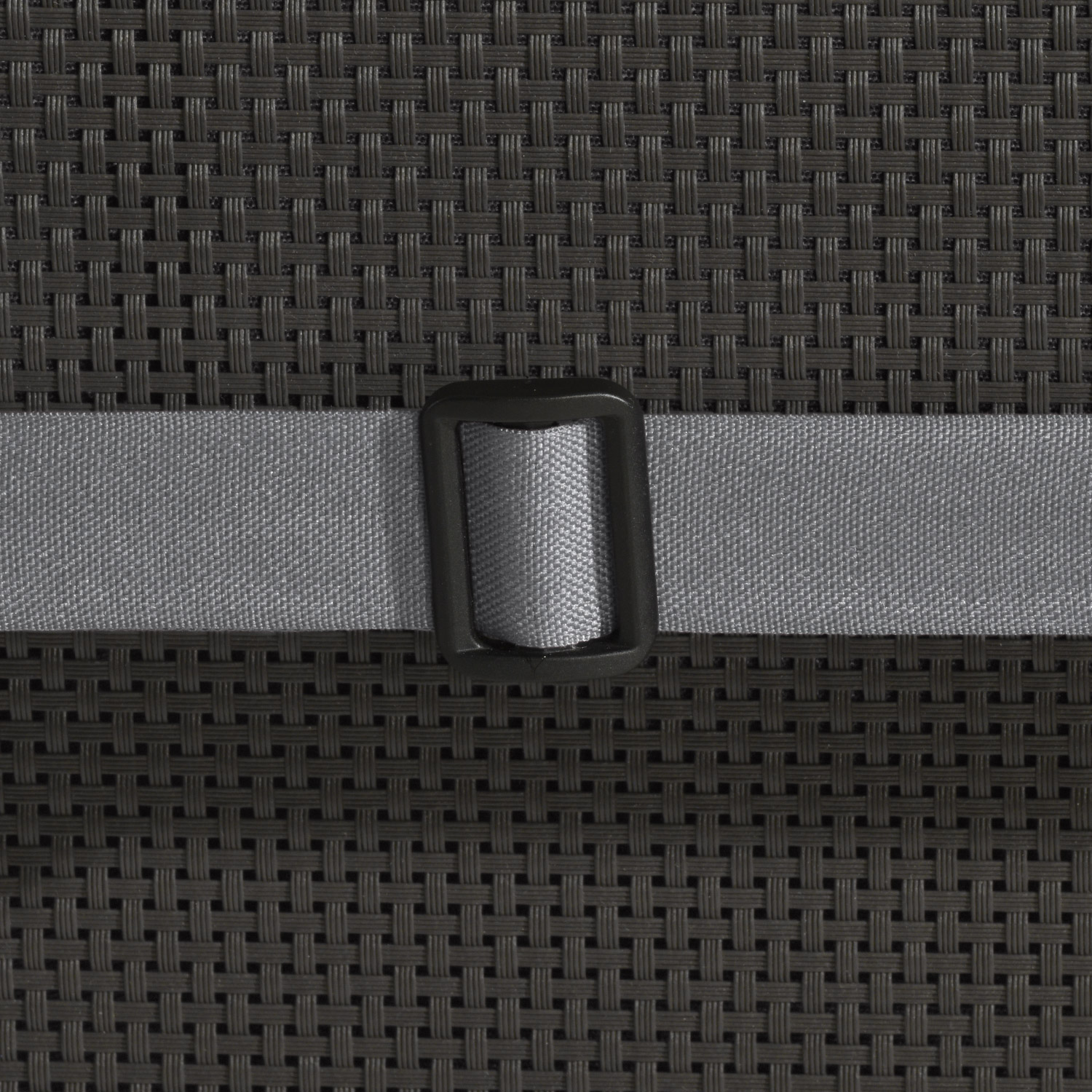 Die gepolsterten Auflagen sind qualitativ besonders hochwertig und mit einer Stoffqualität von 180g/m² ausgesprochen langlebig. Zur einfachen Befestigung dieser Polster ist auf der Rückseite ein Befestigungsband zum festziehen der Rückenlehne angebracht. Außerdem sind am Sitzkissen jeweils links und rechts Befestigungsschnüre zum Fixieren des Stuhlpolsters, damit Ihre Auflage immer passend und rutschfest aufliegt.