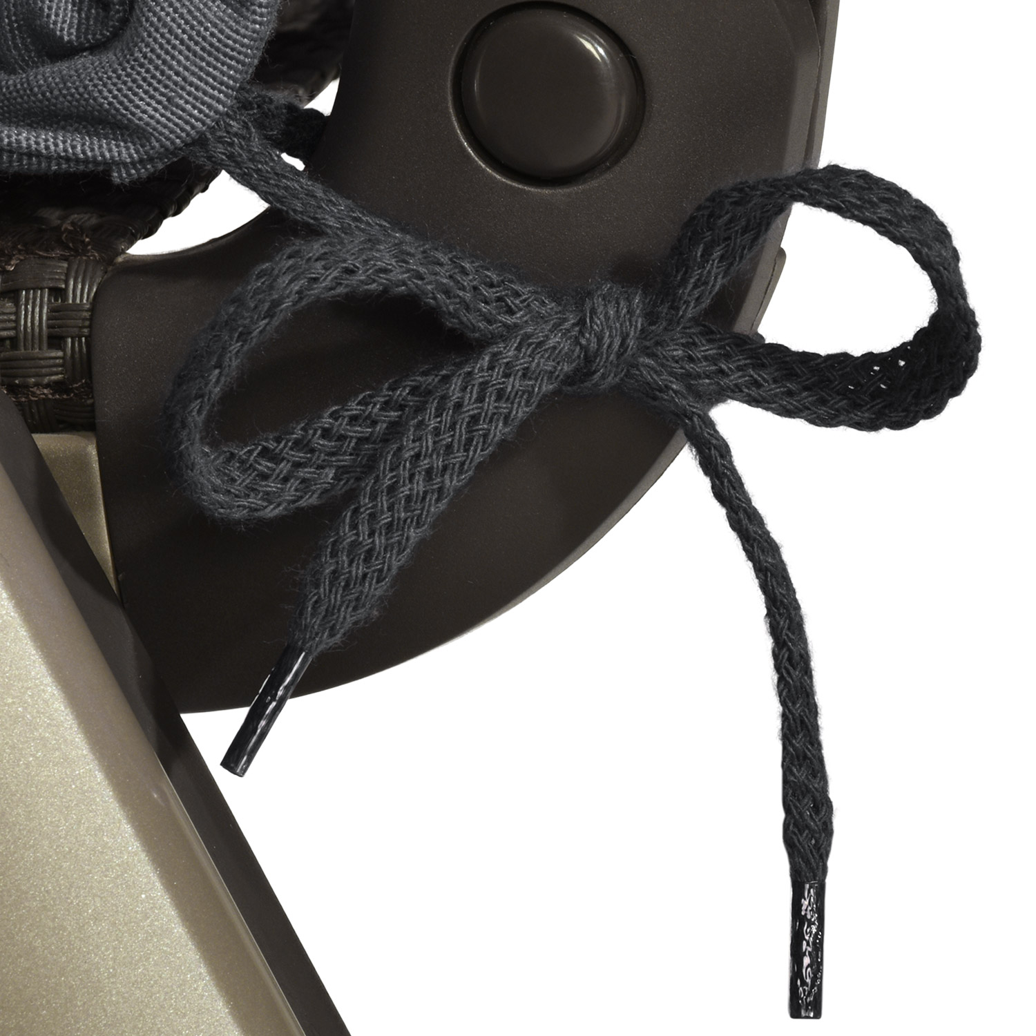 - Befestigung: verstellbares Band im Rücken, zwei Befestigungsschnüre am Sitzkissen