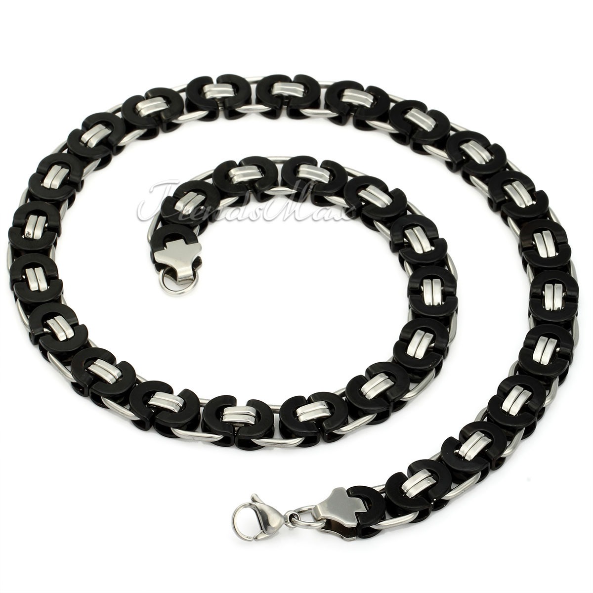 6/8/11mm Mens Stainless Steel FLAT BYZANTINE Chain Necklace 18-36" 4 Colors Link