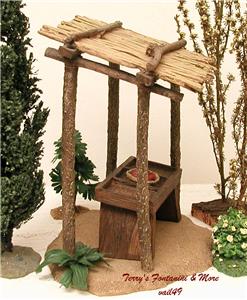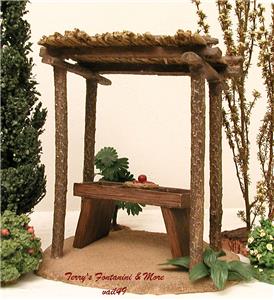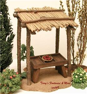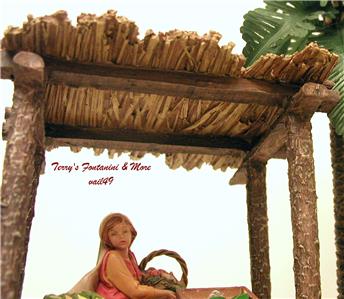 Included is the Produce Table, Perfect for Holding Produce Crates & Small Plate Apples (Plate has a Chip off One Side) and I have Added a 9 More Accessories.... 3 Crates... Corn, Oranges & Green Peppers, 2 Barrels, Stack of Straw, Small Container & 2 Sacks. A Couple of the Accessories are Not Fontanini Pieces. The Kiosk has an Attached Green Fern Growing at the Base of One Pole. Pics of the Kiosk itself are Pics of a Previous One. All Other Pics are of the One you'll be Getting.