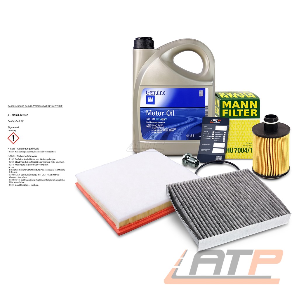 1x Inspektionspaket Filterset inkl. 5l Original OPEL 5W-30 dexos2 Motoröl