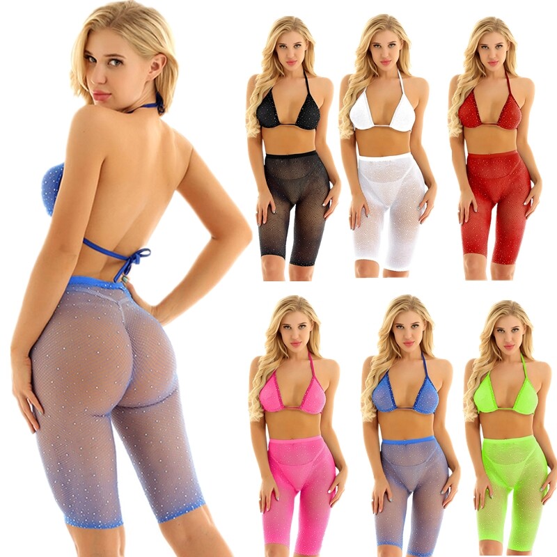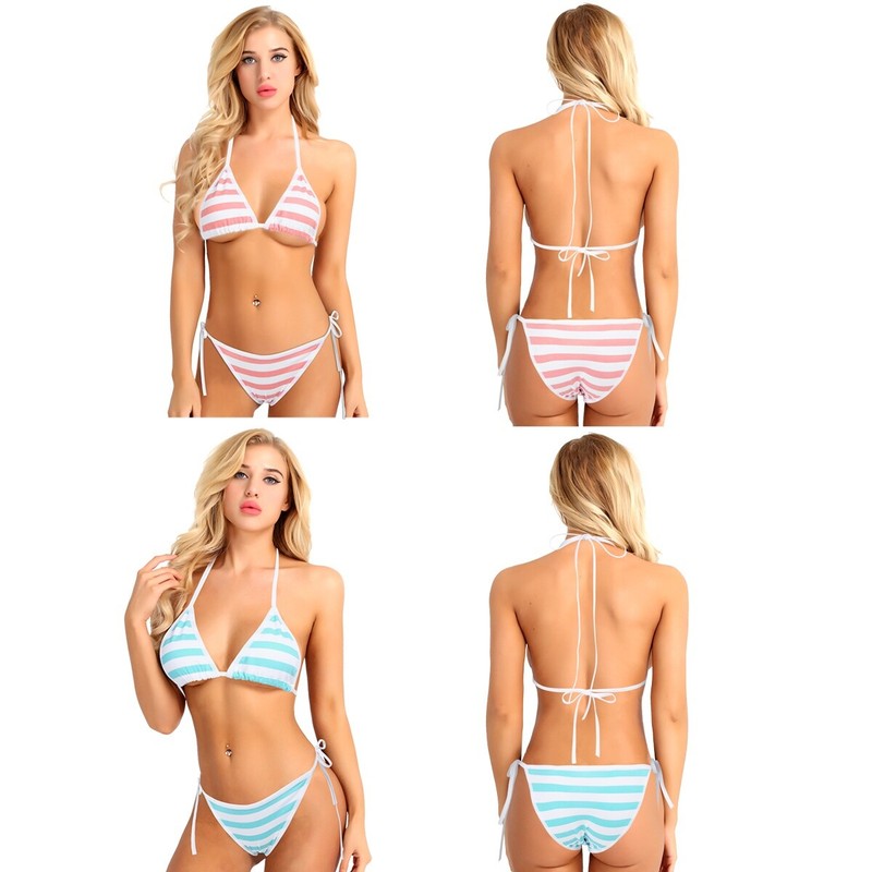 Damen Bikini Set Neckholder BH und String Tanga Sexy Badeanzug Bademode Dessous