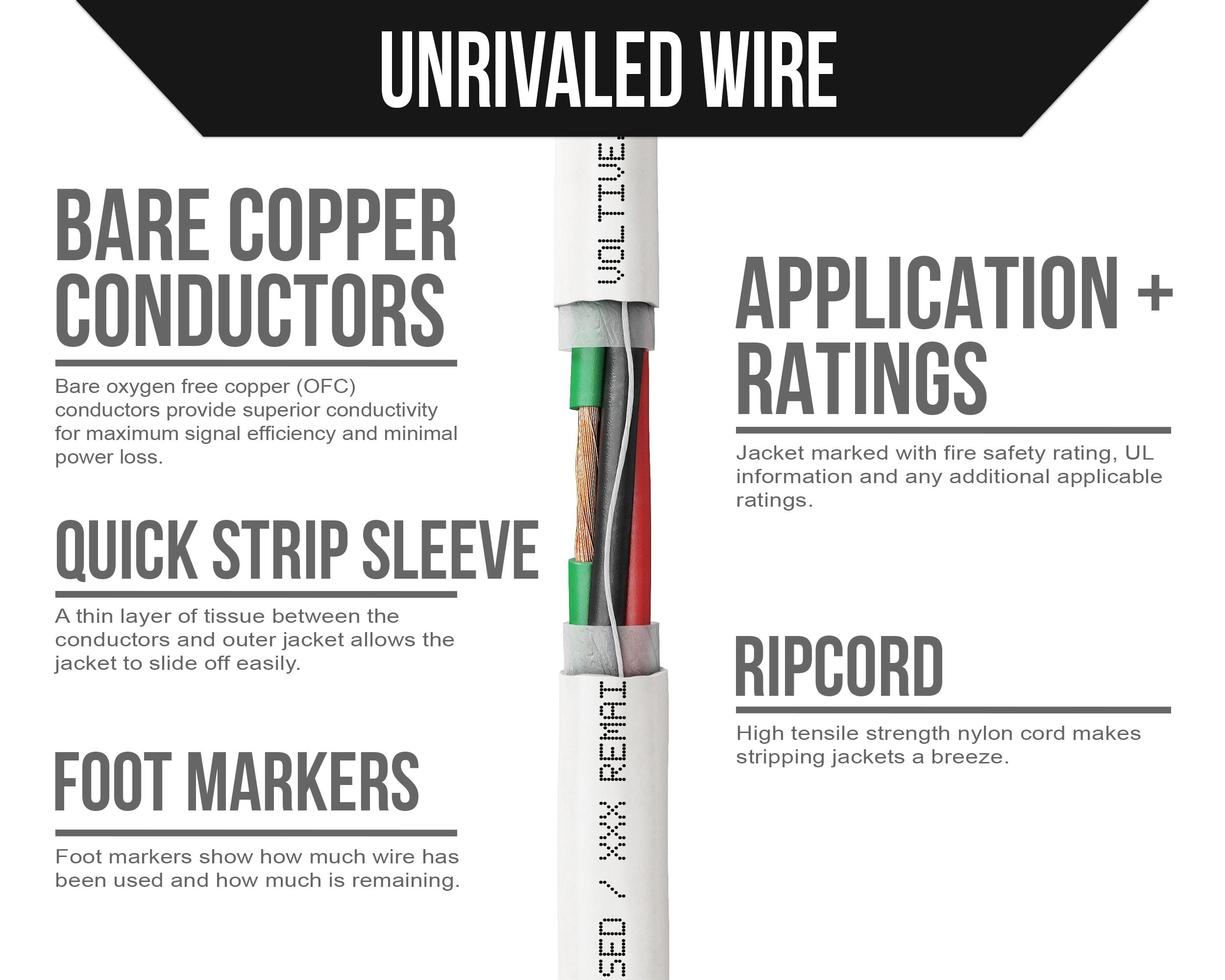 Voltive 12/4 Speaker Wire, In-Wall CL3 & Direct Burial, White, 500ft