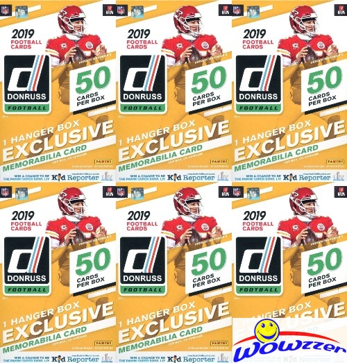 (6) 2019 Donruss Football Factory Sealed Hanger Box-300 Cards+6 EXCLUSIVE MEM!