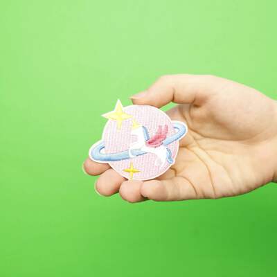 Unicorn With Pink Planet Embroidered Iron On Patch