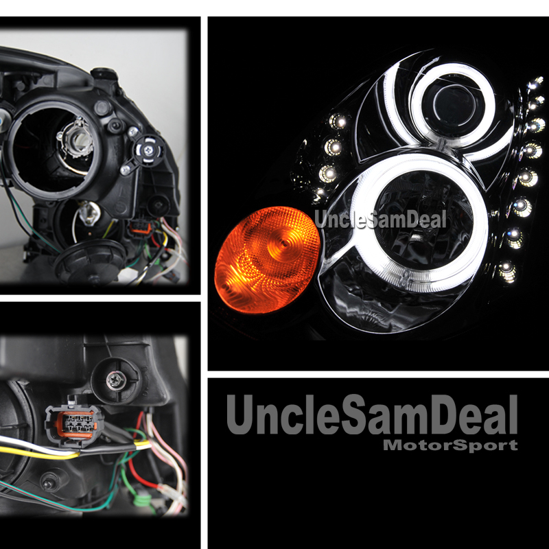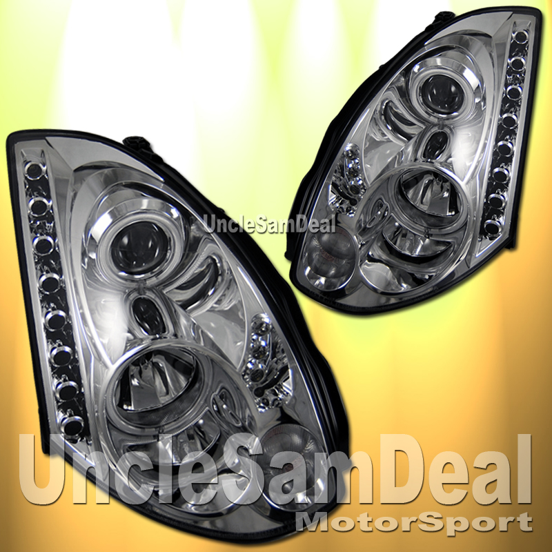 2003-2005 INFINITI G35 COUPE CHROME DUAL LED HALO PROJECTOR HEAD LIGHTS WITH LED PARKING LIGHTS(HID MODELS) - CONDITION: 100% NEW