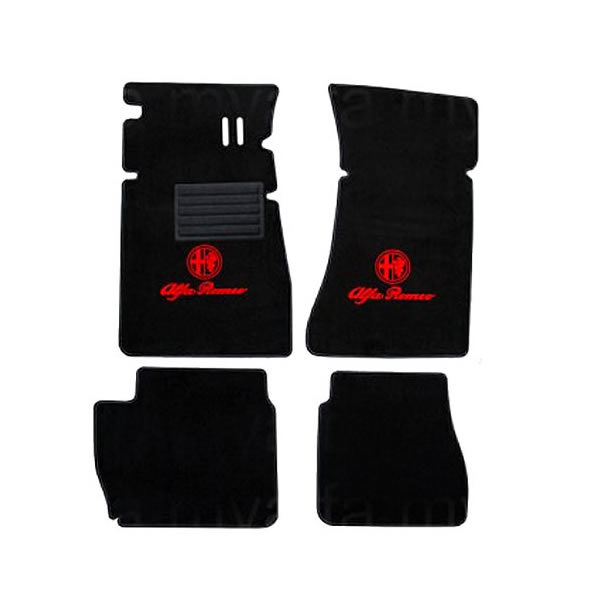 ensemble de tapis de voiture en quatre parties, velours noir, avec lettrage et emblème,