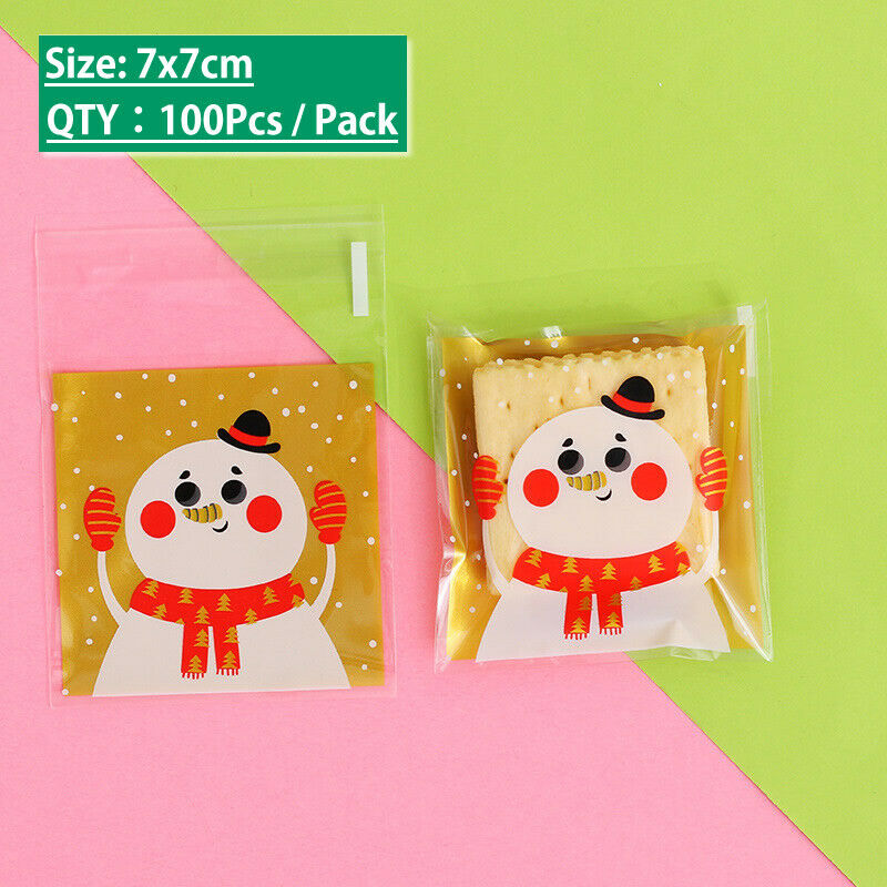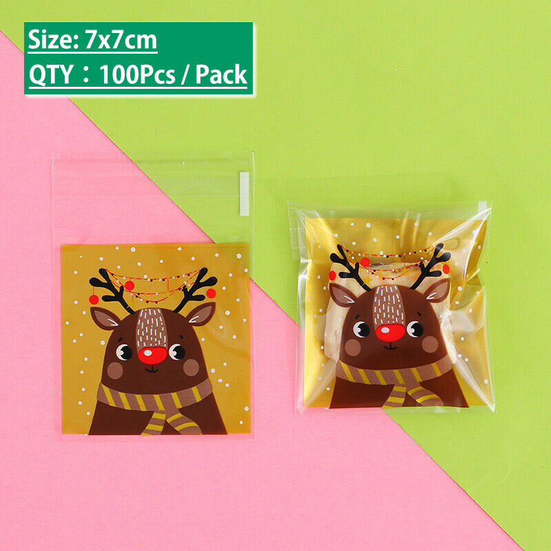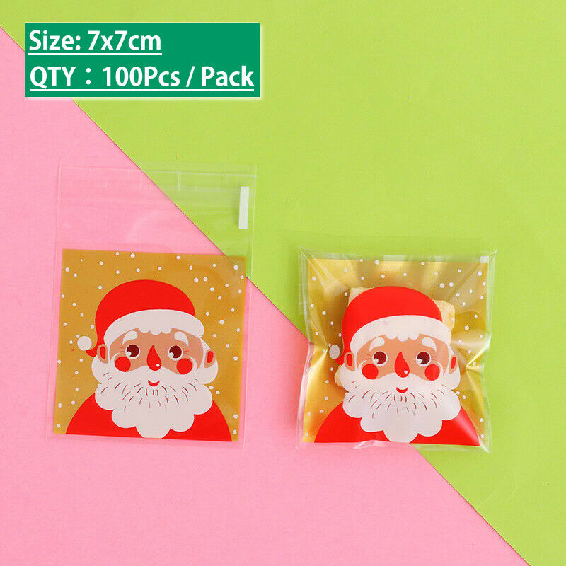 100PCS Christmas Plastic Cello Cellophane Party Candy Biscuit Cookie Gift Bags