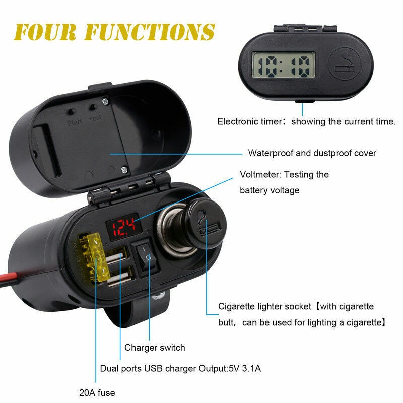 Nom du produit: chargeur allume-cigare multifonction de type montre quatre en un