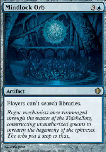MINDLOCK ORB: Artifact, Players can't search libraries. RarityRare ColorRed TypeArtifact Mana3U Cost4 SetShardsOfAlara SetAlaraBlock