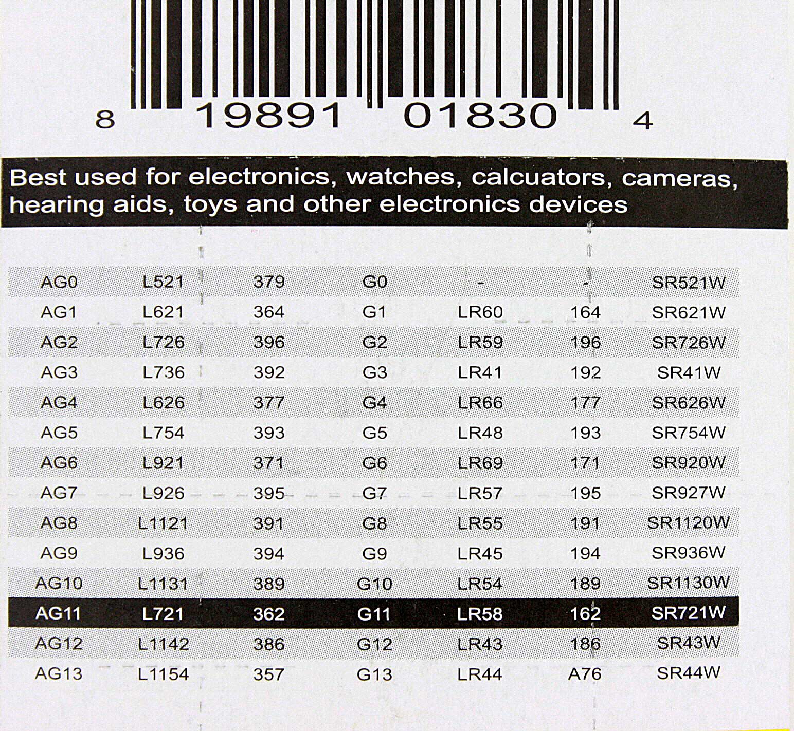 Exell EB-L721 Alkaline 1.5V Watch Battery Specifications: