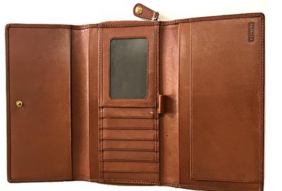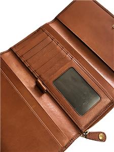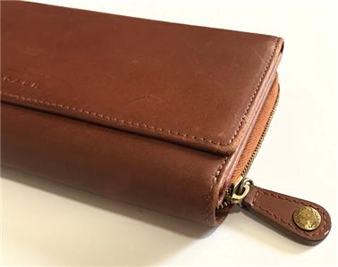 This is PRELOVED and in excellent condition. It has been used and it shows signs of wear, loaded with character! You will surely love this if you love the distressed and vintage look but if any signs of wear bothers you and you don't like the vintage look and other leather variations such as scratches and other subtle markings, this wallet is not for you! Overall this wallet is still in wonderful condition with lots of life left and will only gets better the longer you use! This is a beautiful large TRIFOLD clutch wallet with lots of pockets for your CC's and $$$'s! Really Awesome! You will absolutely love this wallet if you love vintage look & style! This would absolutely make a wonderful gift for someone special or an addition to your coach collection! Comes wrapped in tissue paper.