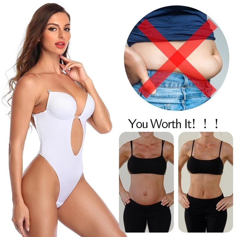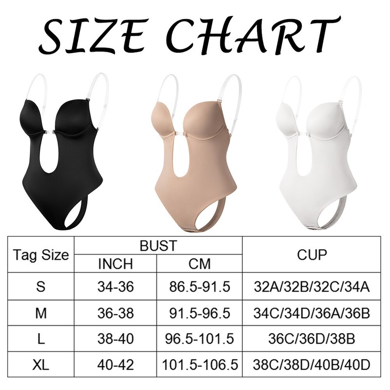 · Color: Black, Nude, White · Material: Nylon84%,Spandex16% · Size: S,M,L,XL · ❤ SKIN-FRIENDLY ❤ -- The slimming body shaper is made of top grade fabrics,very stretchy and durable fabric. The entire snug women underwear shaper fits you body, quick-drying, light weight and invisible, good for all seasons. · ❤ DEEP V-NECK PLUNGE CORSET ❤ -- This waist cincher bodysuit is to help women create a beautiful body shape in daily life. The whole one piece wireless padded bra is wireless, comfortable to fits tightly on the body, bring you the light shaping underwear effect.Seamless design for invisible underneath any type of clothing. · ❤ CONVENIENT USE ❤ -- Adjustable 3 hooks eyes hook & closure, make it easy to adjust comfortably which is convenient for bathroom, easy to put it on & off. · ❤ FIRM TUMMY CONTROL ❤ -- Helps smooth and trim your figure, strengthen the effect of flatten abdomen and reduce inches from waist and abdomen to get a hourglass look and make you more confident ! · ❤ BUTT LIFTER THONG SHAPEWEAR ❤ -- Women U plunge bodysuit thong body shaper work as a seamless high-waist butt lifter panty releases your buttocks, make your butt looks bigger,sexier,and more beautiful. · ❤ ALL MATCH SLEEVELESS BODYSUIT TOPS ❤ -- Our women jumpsuit tops shapewear is backless design to reveals a sexy and beautiful back. Prefect match with your daily clothing such as backless clothing and dresses, also prefect match with high waist pants ,jeans , shorts, dress, jackets.It also can be shaping underwear,invisible under your clothing. · ❤ SUITABLE OCCASION ❤ -- This shaper is a must-have to give you sexy curves in working, travel, leisure, sports and fitness, formal occasions, suitable for wedding, dating, party, prom, club, Halloween, fashion show, gym, beach, night out and daily life. · ❤ BEST GIFT SHAPER ❤ -- Gift ideal for any women who loves caring about their body shape. Best gift for New moms, birthdays, Mother's Day, Christmas, Thanksgiving, Black Friday, Cyber Monday.