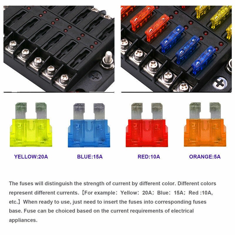Cette boîte à fusibles consolide les circuits de dérivation afin que vous n'ayez pas à fusionner sur le câblage enchevêtré en désordre associé aux fusibles en ligne. Stockant jusqu'à 12 fusibles à lame ATC / ATO / ATF jusqu'à 30 A max par circuit, cette boîte à fusibles à lame est parfaite pour les applications automobiles, marines, extérieures et domestiques.