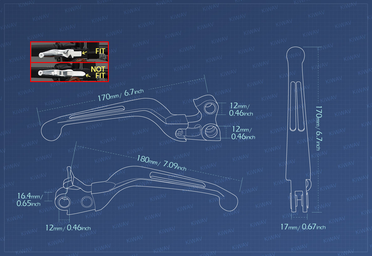 KiWAV Slotted cut 10202B Ergonomic hand control levers black for Harley Davidson