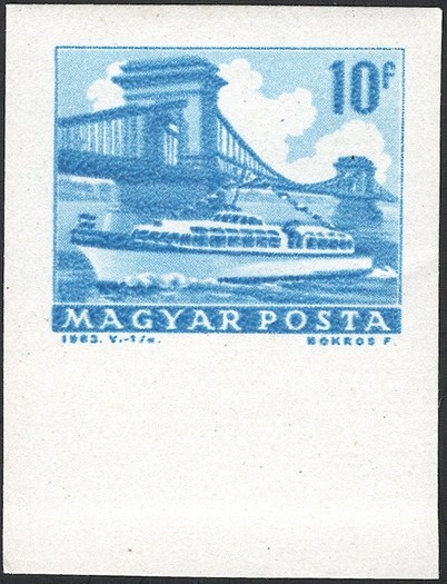 Hungary, 1963. Ship and Chain Bridge, Scott 1507, Imperf selvage single. Mint, OG, NH. VF.