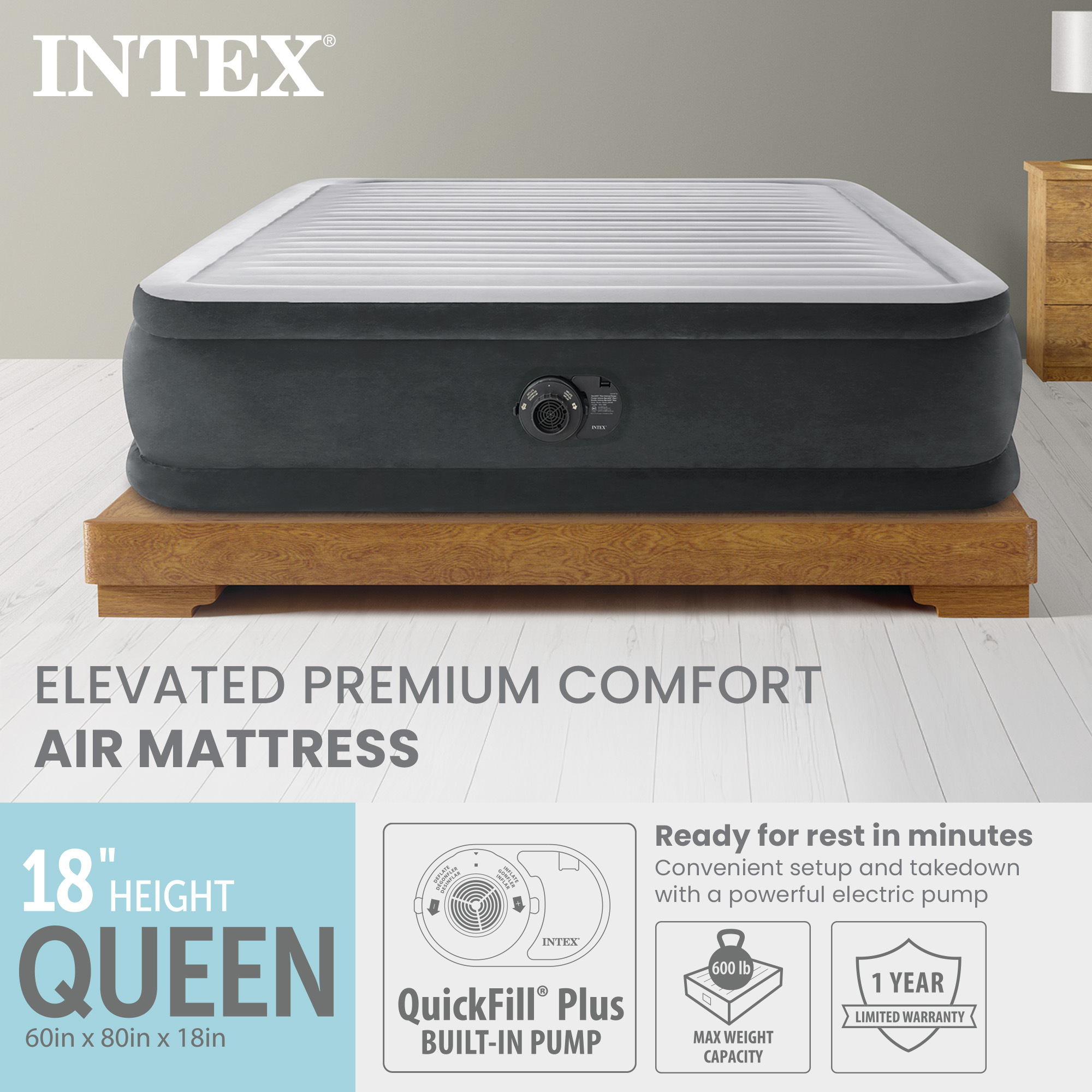 Whether it's a night under the stars or you just need an extra bed for a friend, the Intex Dura-Beam Fiber Tech Elevated Air Mattress will give you comfort and peace of mind for a goodnight's rest.