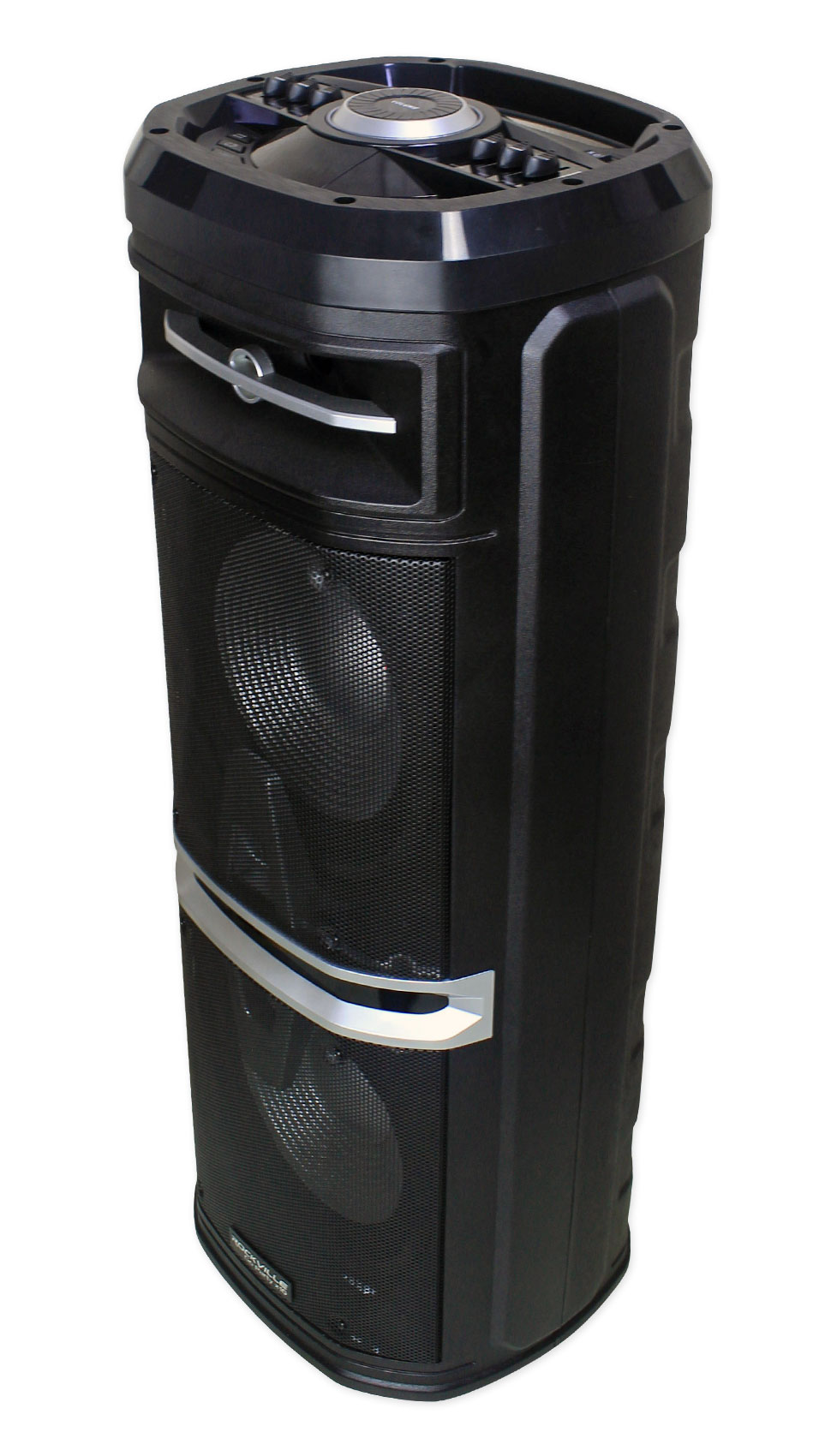 - Dual 10” Powered 1,000 Watt Bluetooth Speaker with 12V, 7.5AH Rechargeable Battery