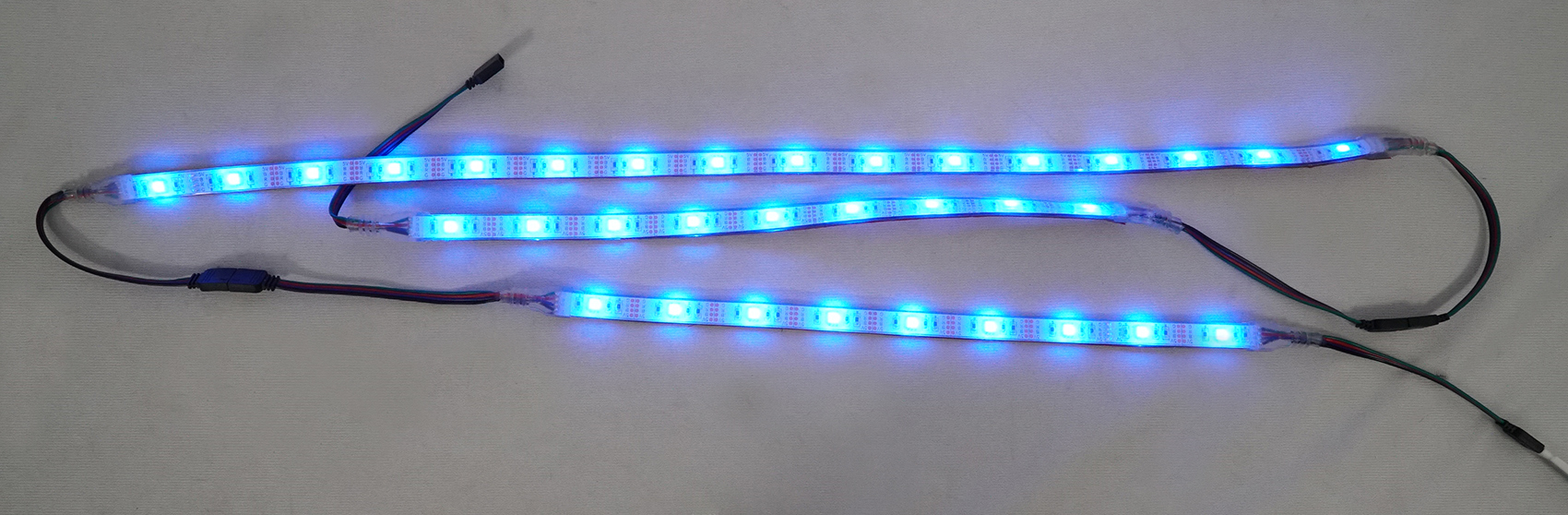 - Each end of the light strip has a 7 inch wire with a connector cable to connect one LED strip to the next one