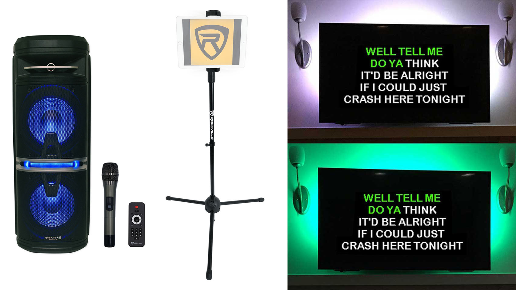 Rockville Go Party X10 Karaoke Machine System+Wireless Mic+Tablet Stand+TV LED's