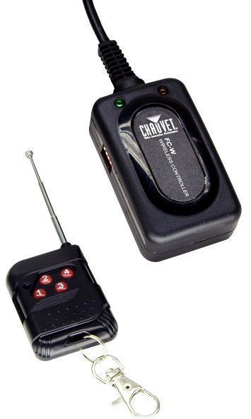 The FC-W is a wireless remote control designed to activate up to four CHAUVET® fog machines independently (separate receivers for additional foggers are required). Two LED indicators display whether the machine is ready or heating.