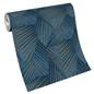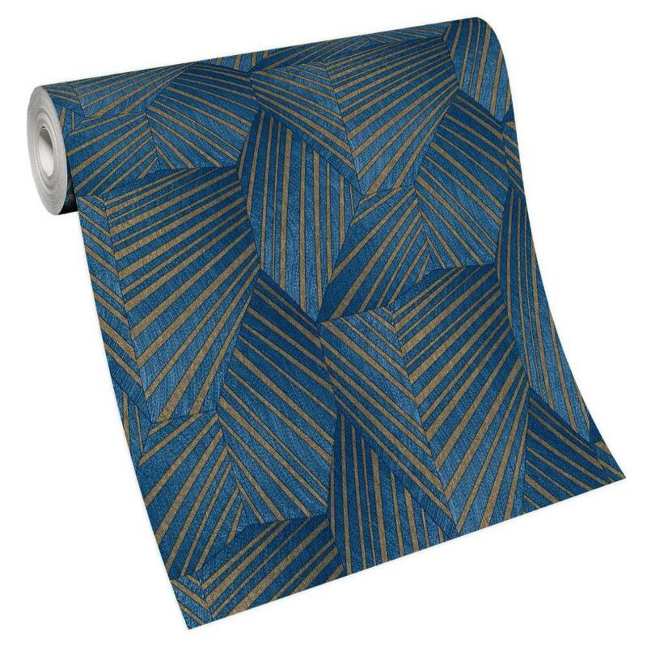 This luxury wallpaper is a great way to add a modern and elegant feel to your walls. It features a unique geometric striped printed pattern in varying blue tones with gold metallic detail throughout, set on embossed vinyl luxury paper for a truly mesmerising wallpaper.