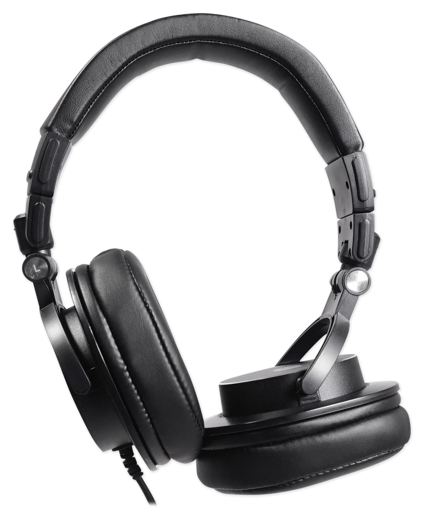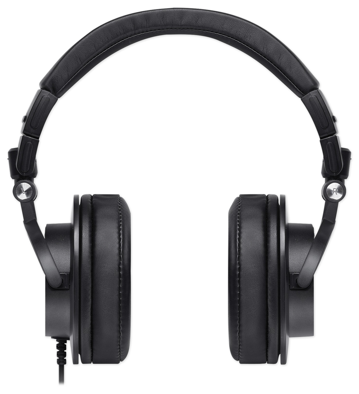 on two axes, and comfortable, durable ear pads. The straight, ten-foot cable