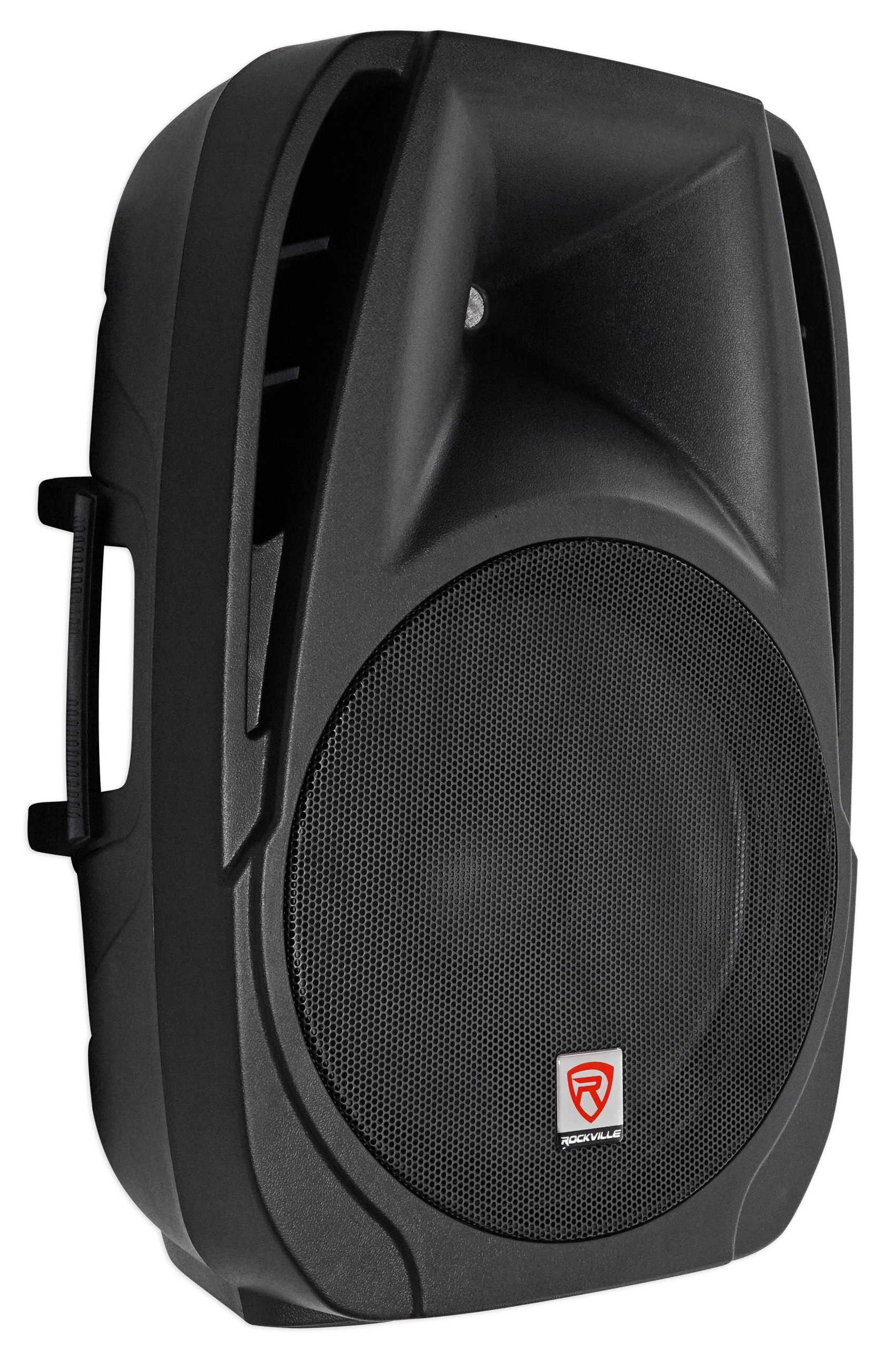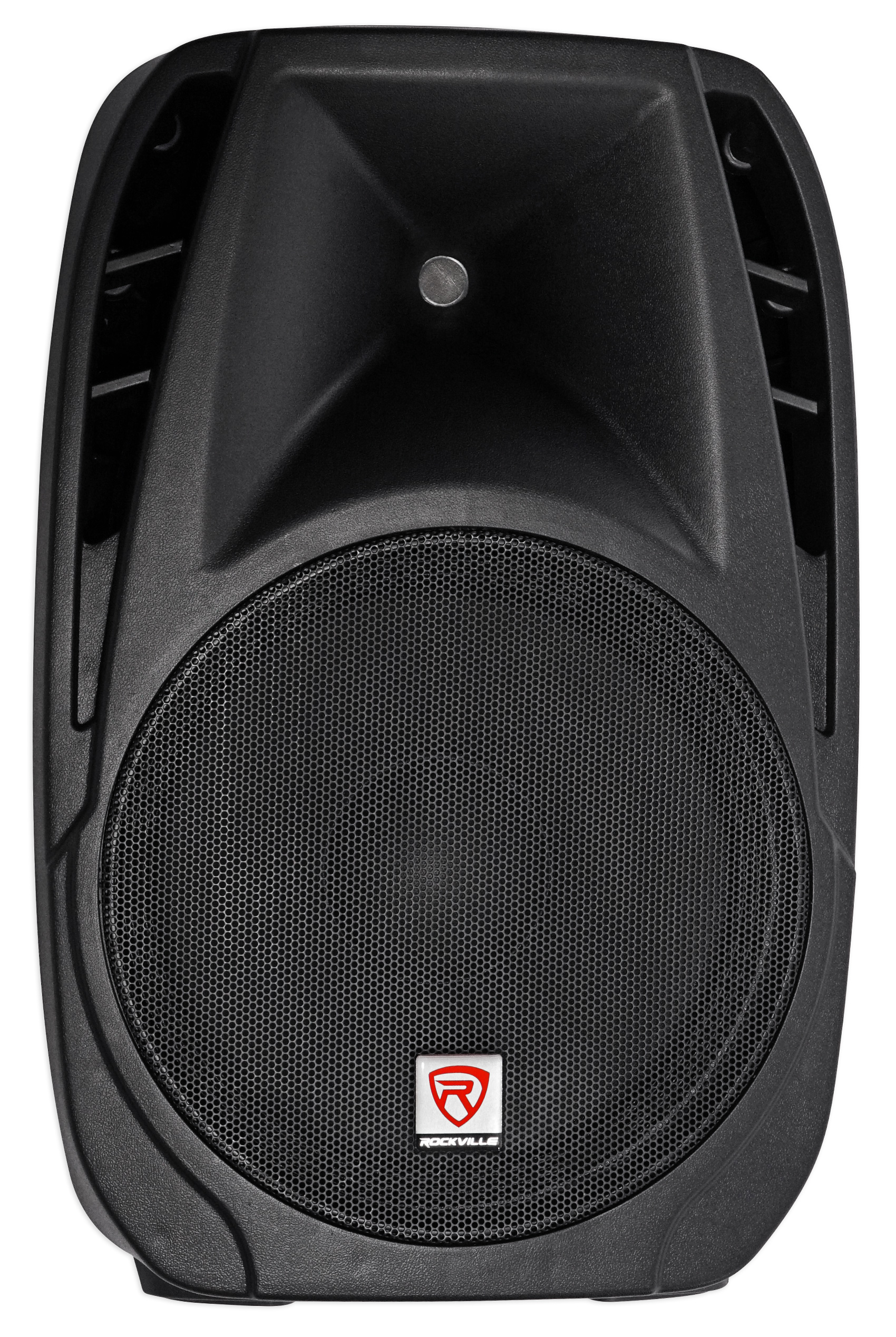 Package: Rockville RPG2X15 PA System Package with Mixer, Amp, 15" Speakers, Stands, Mics and Bluetooth + (2) Rockville RTP32W Totem Pole Moving Head Light Stand With Black and White Scrims+Carry Bag + Rockville RFAAW DJ Facade Metal Frame Booth with Travel Bag and Scrim + (4) Rockville RockPar50 Par Light with DMX Control, Dimmer, Strobe, Color Mixing, and More