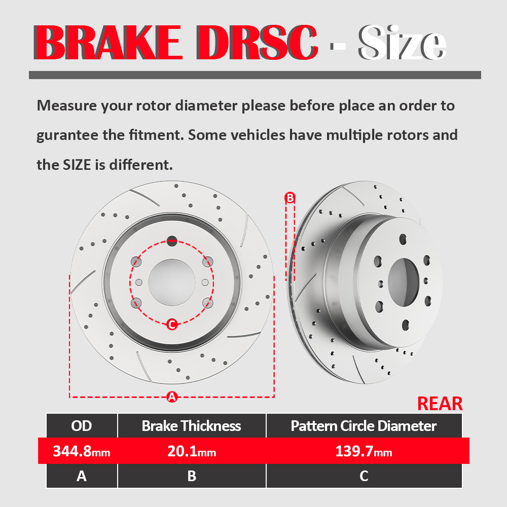 Completed Rear Disc Brake Rotors + Ceramic Brake Pads Kit