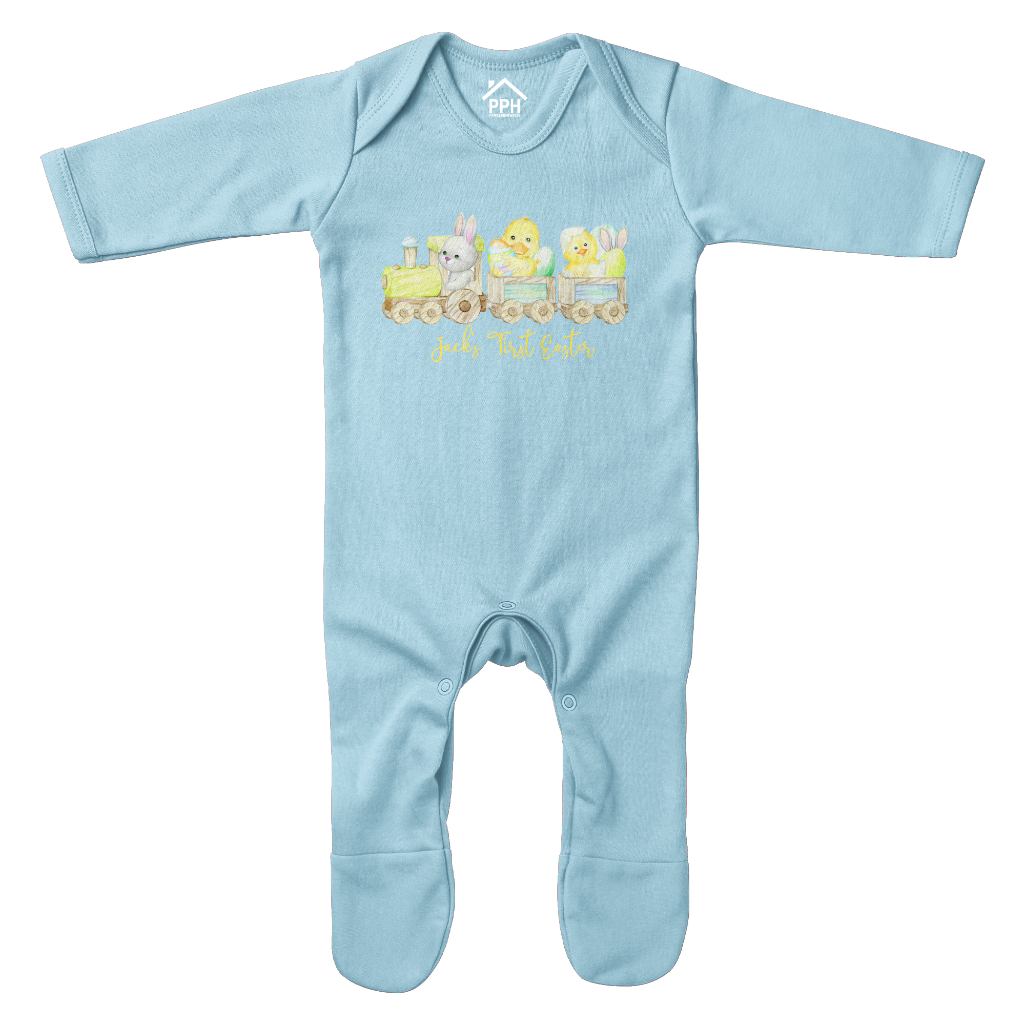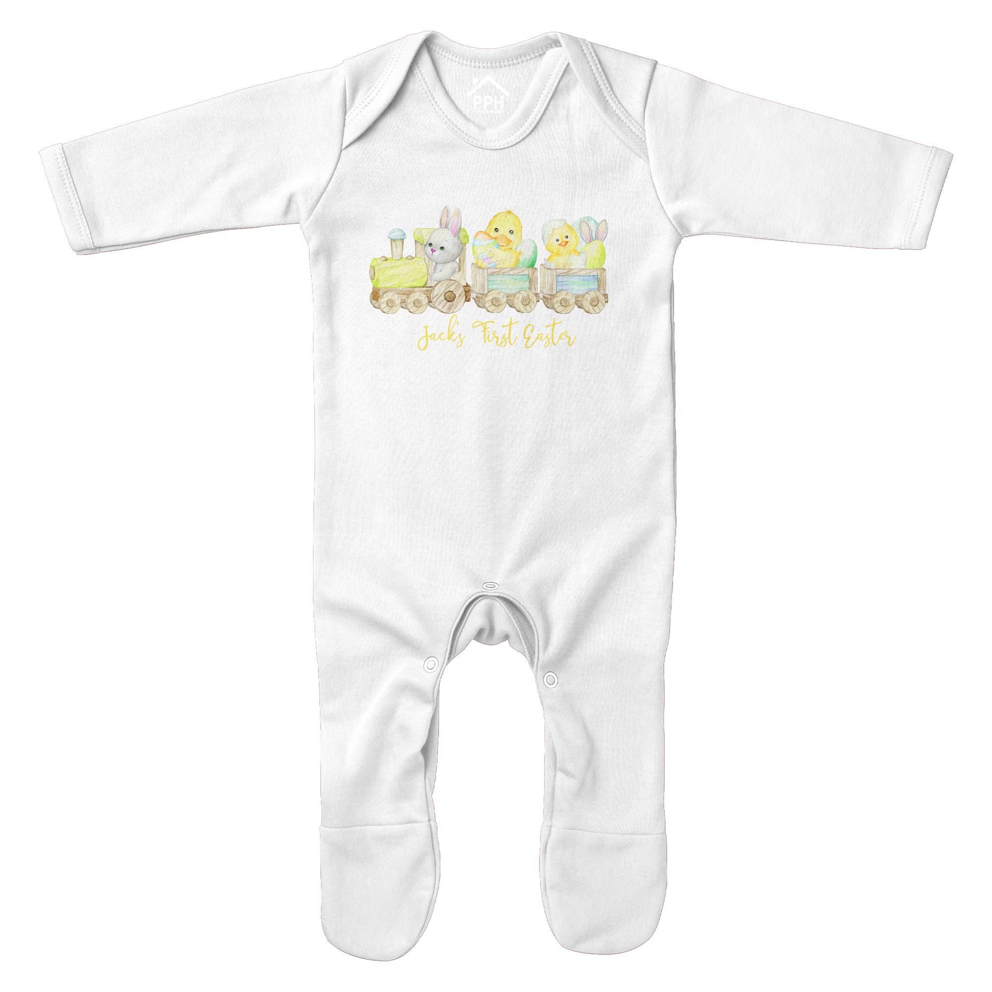 Baby Boys First Easter Train Romper Suit – Personalised Easter Gifts For Family – Chick Bunny Egg