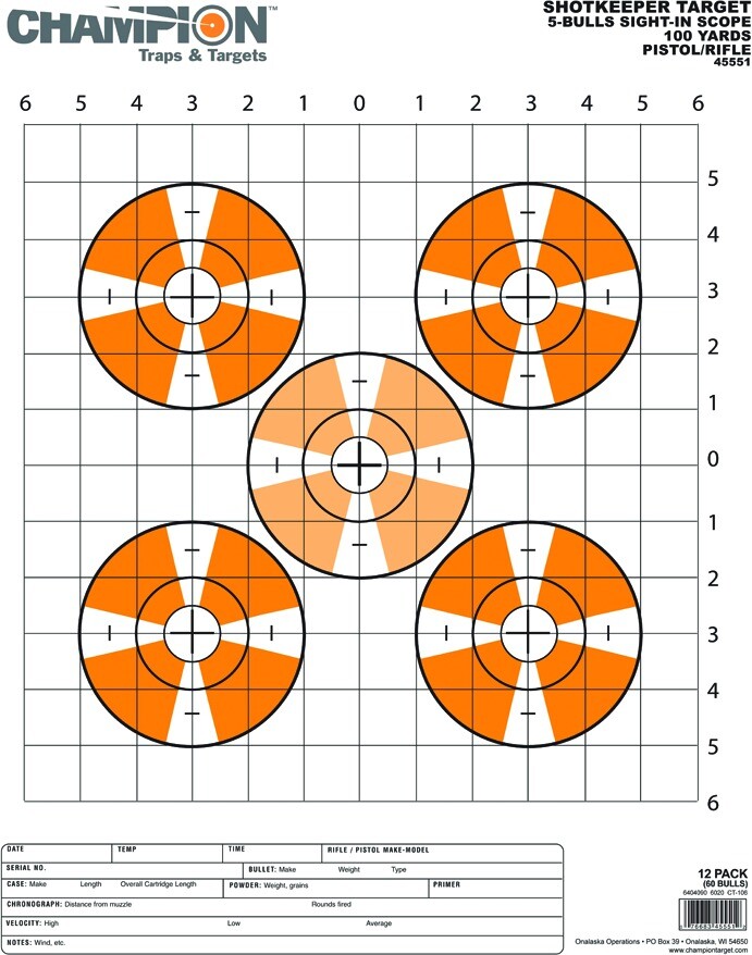 Five challenging metal targets are set high above the ground for easy visibility. Middle target resets the 4 spinners. Steel targets can be used with .22 caliber rimfire or .17 HMR at 100 yards